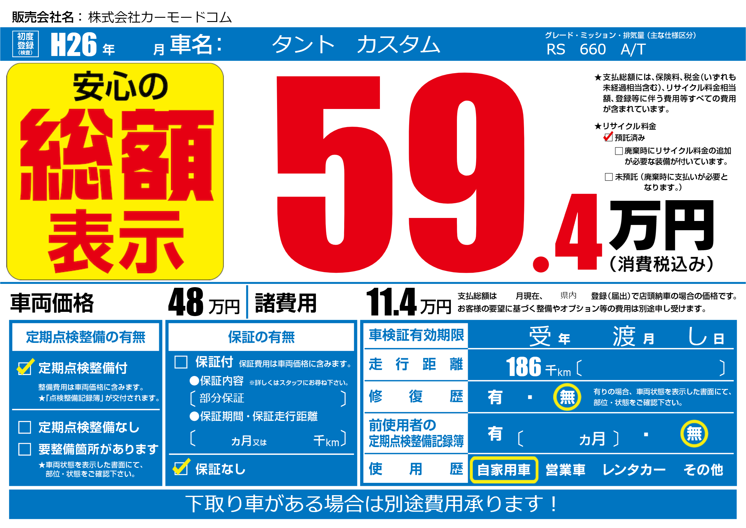 | リサイクル料金 預託済 |