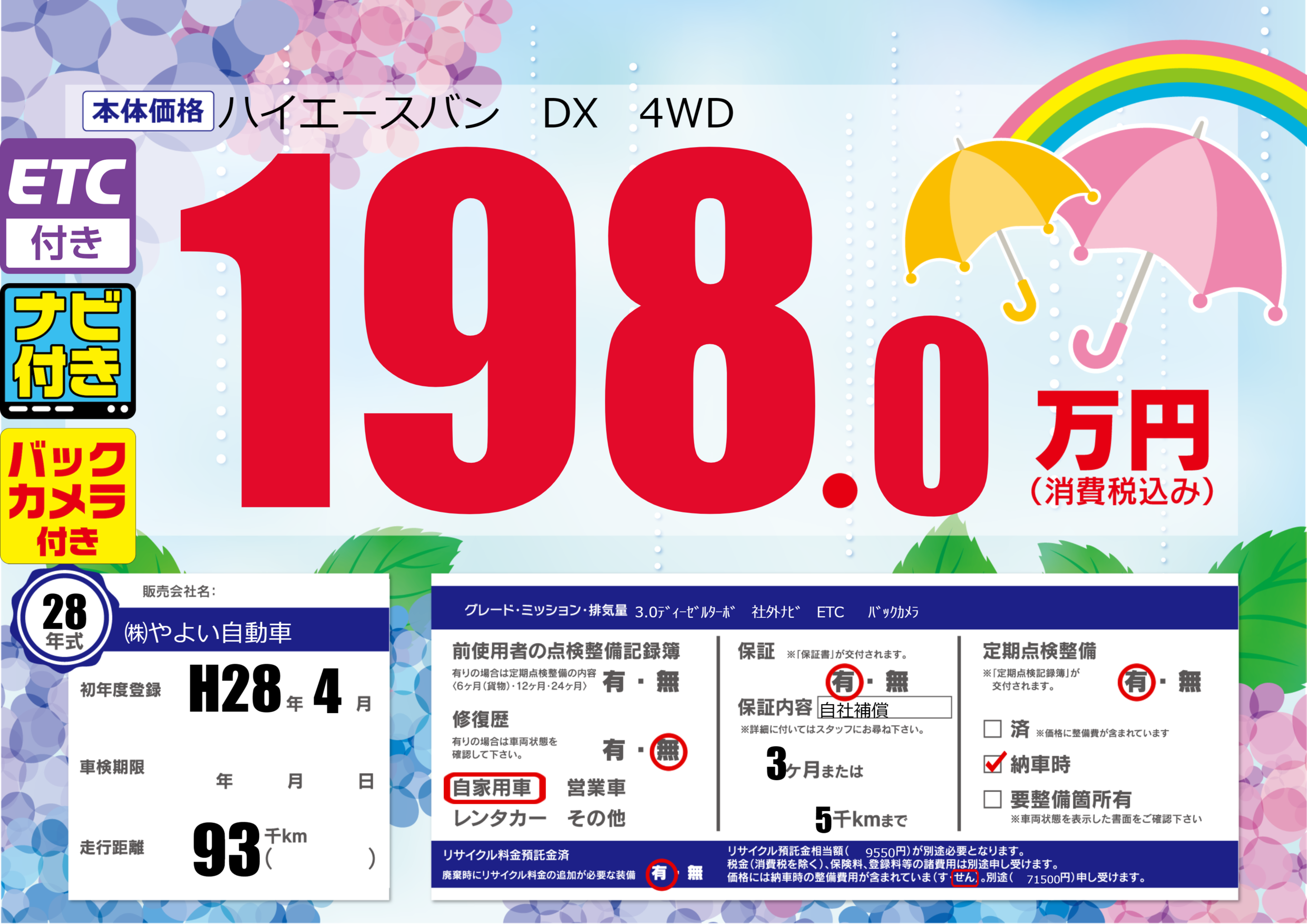 | 車名 | ハイエースバン DX 4WD | グレード ミッション 排気量 |