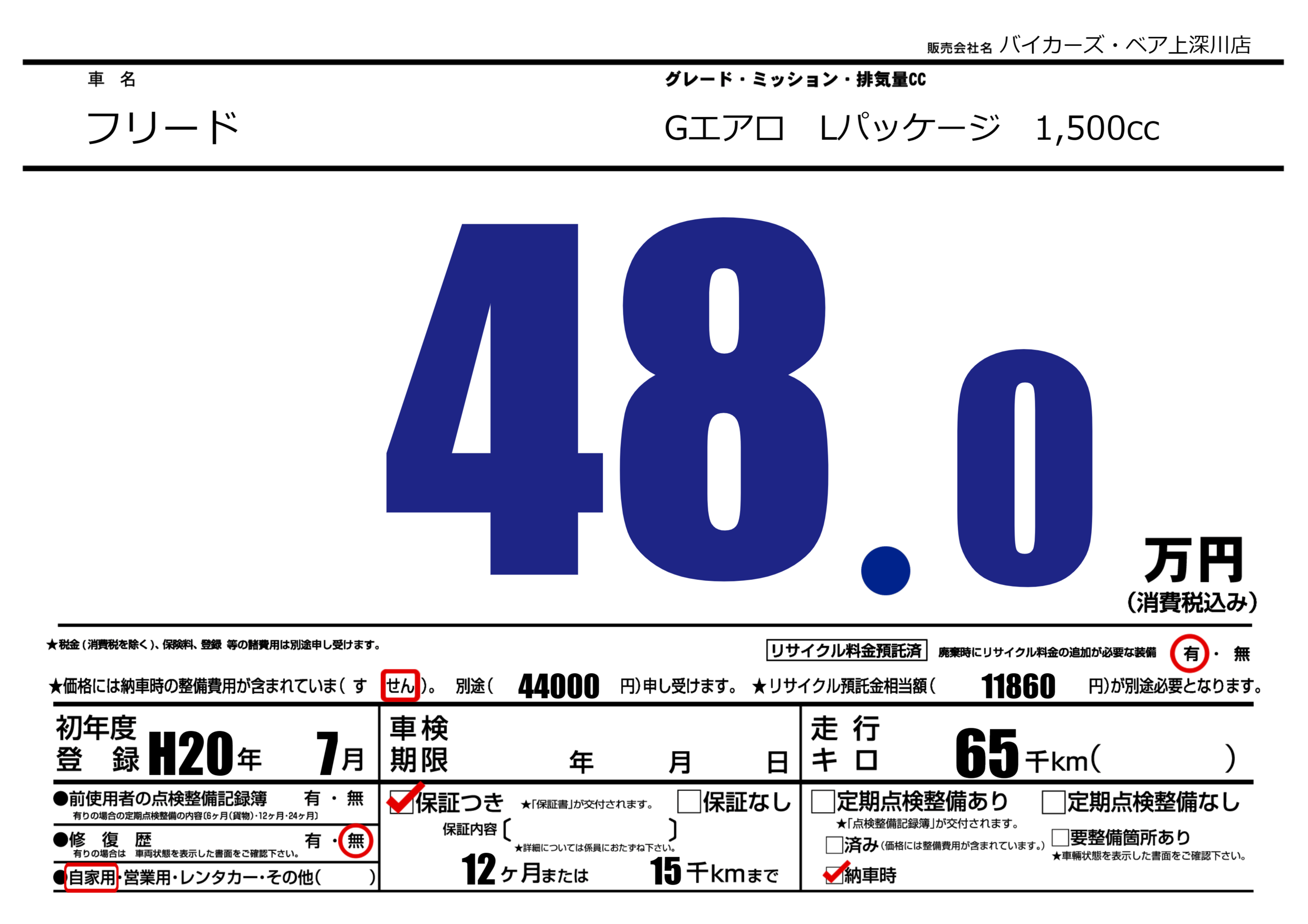 保証付き 保証内容(---) 12ヶ月または(15)千kmまで |