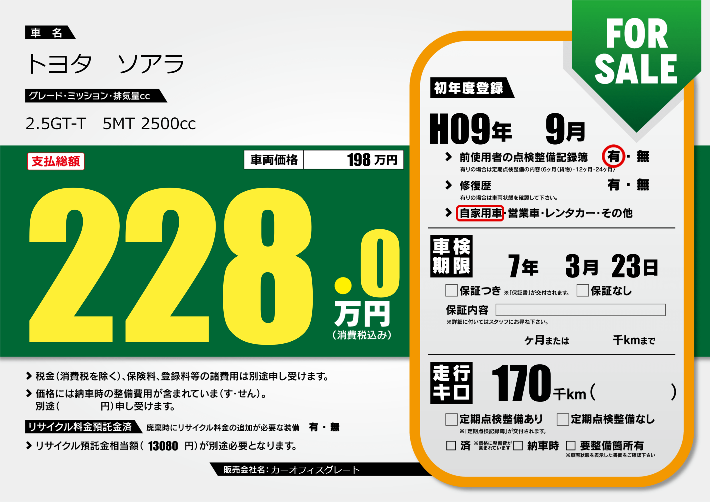 なし | 車検制限 | 7年3月23月 |
