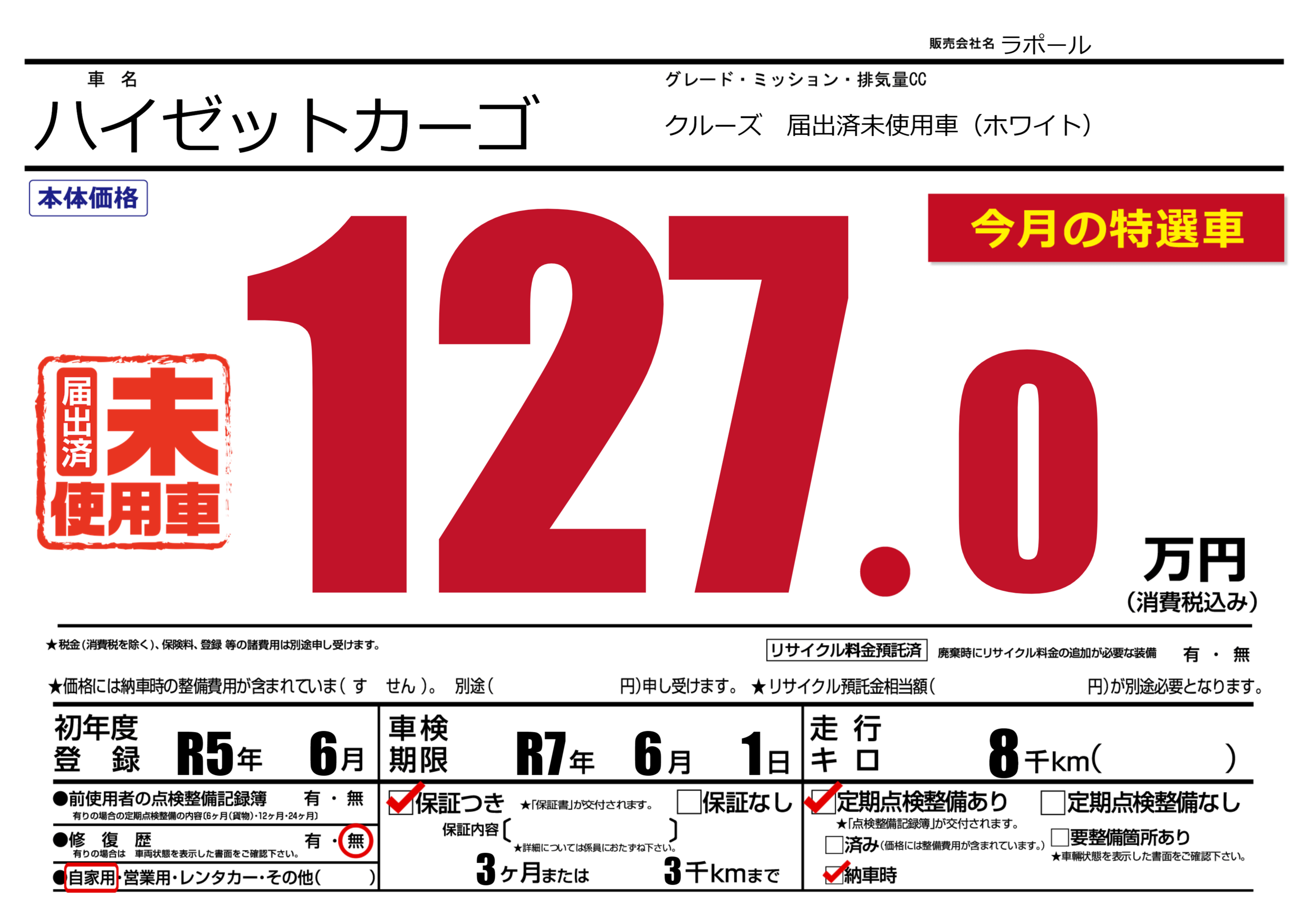 保証付き 保証内容(---) 3ヶ月または(3)千kmまで |