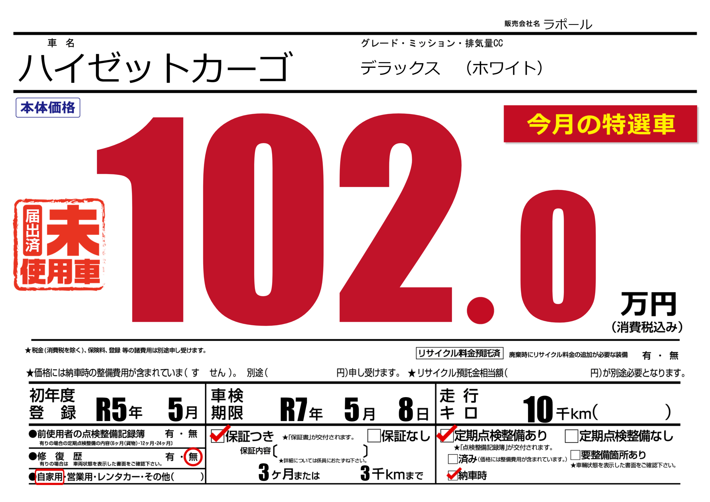保証付き 保証内容(---) 3ヶ月または(3)千kmまで |