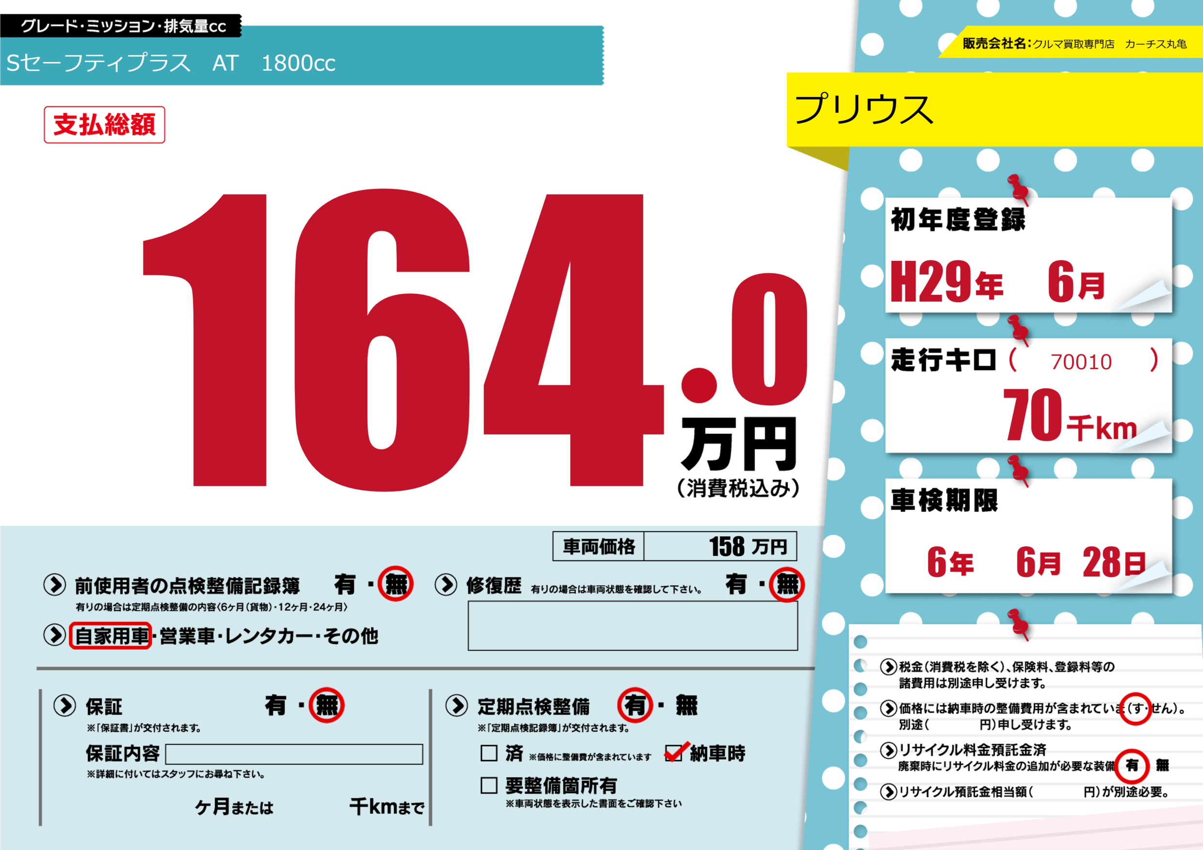 あり | 車検制限 | 6年6月28月 |