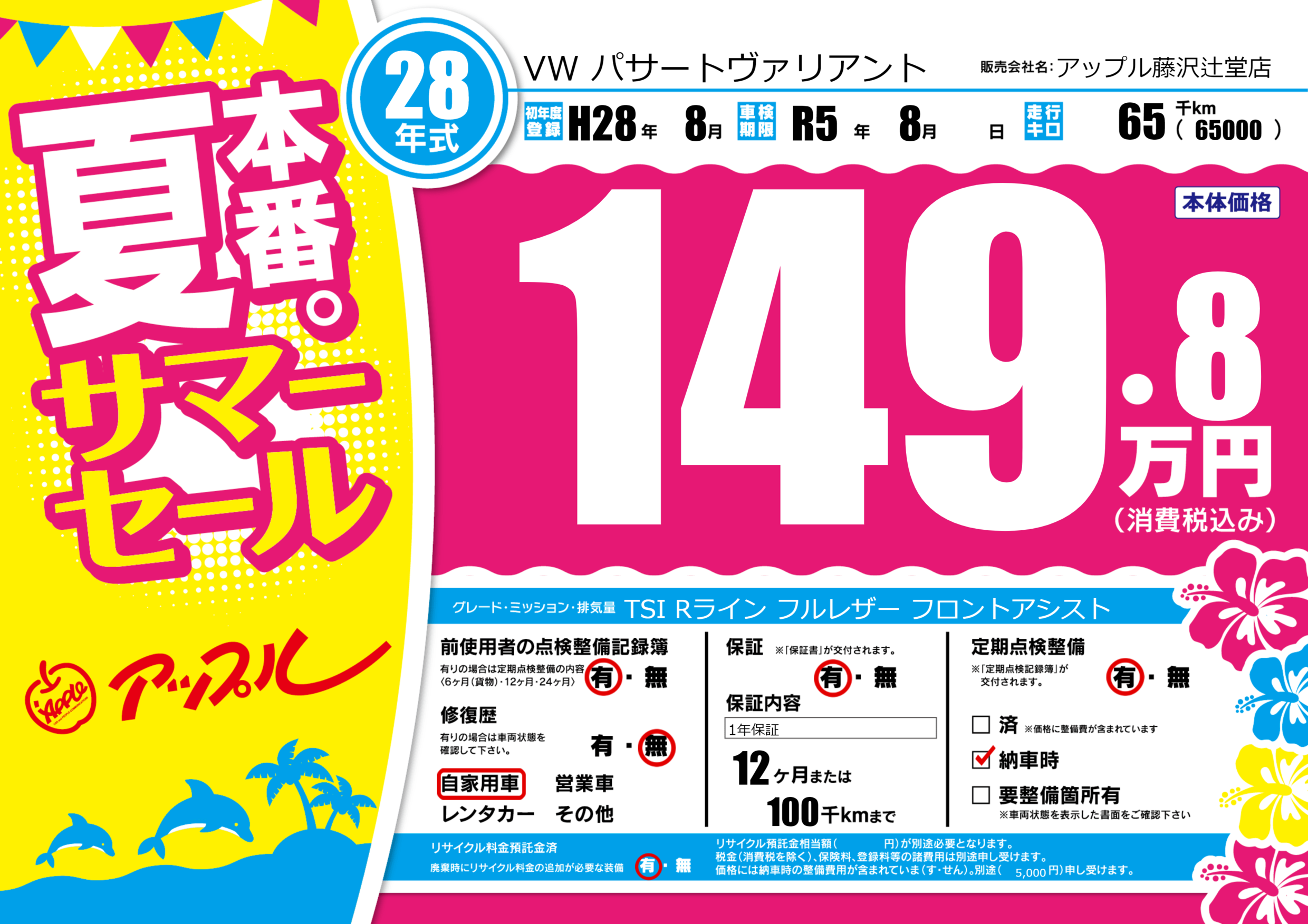 | 走行キロ | 6.5万km | 初年度登録 | H28年8月 |