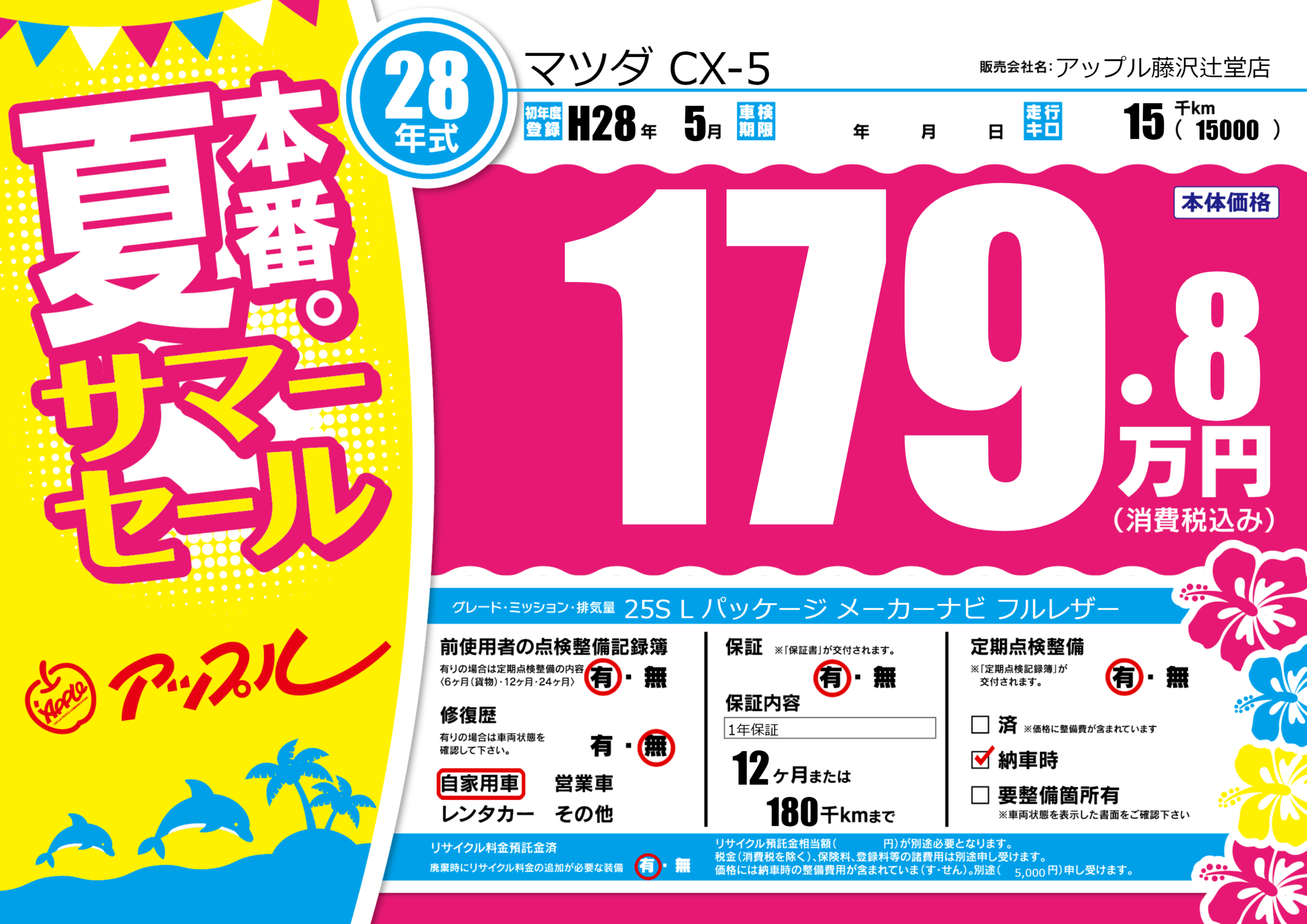 | 走行キロ | 1.5万km | 初年度登録 | H28年5月 |