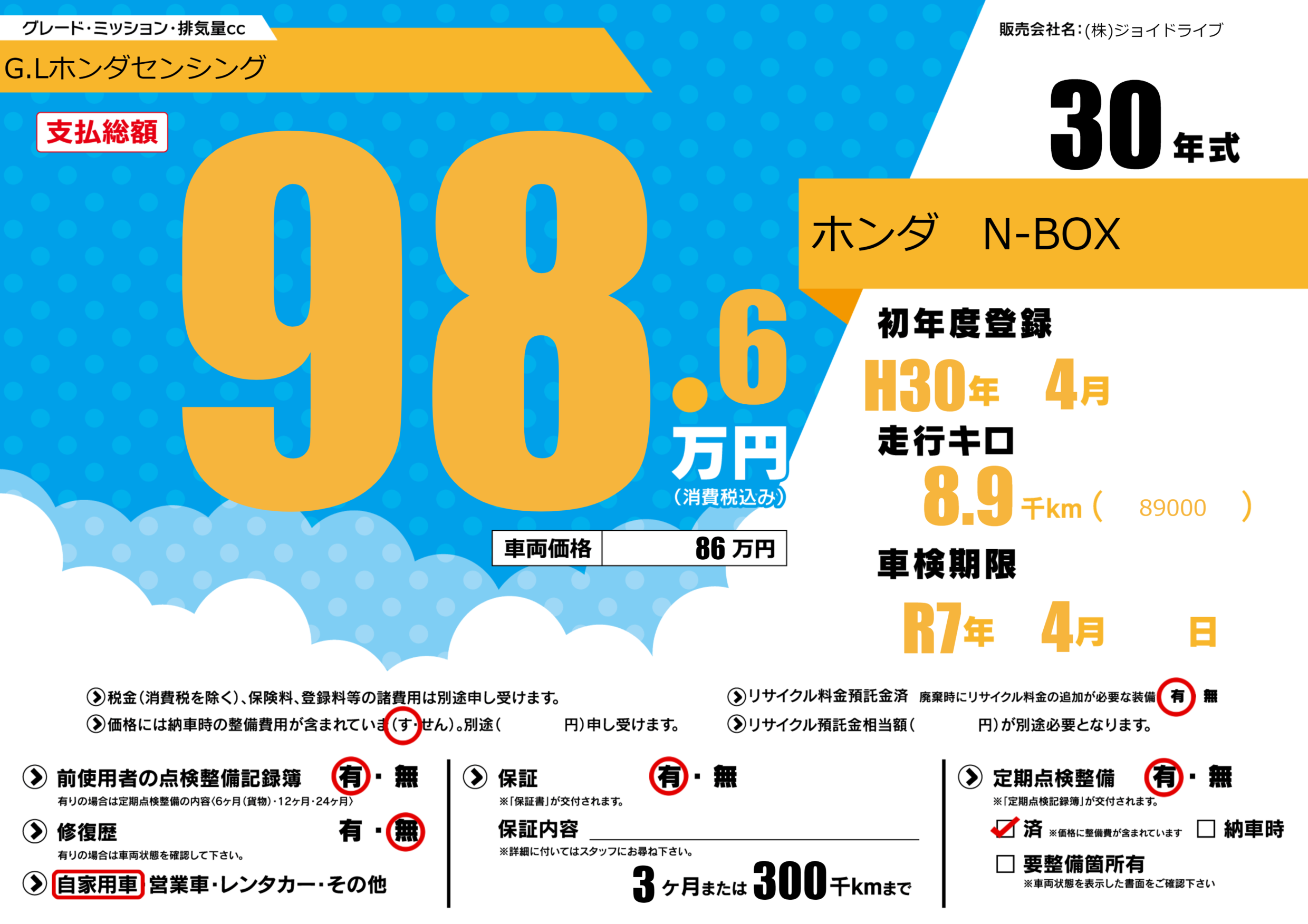 | 定期点検整備 | 定期点検整備あり 定期点検整備済み | ||