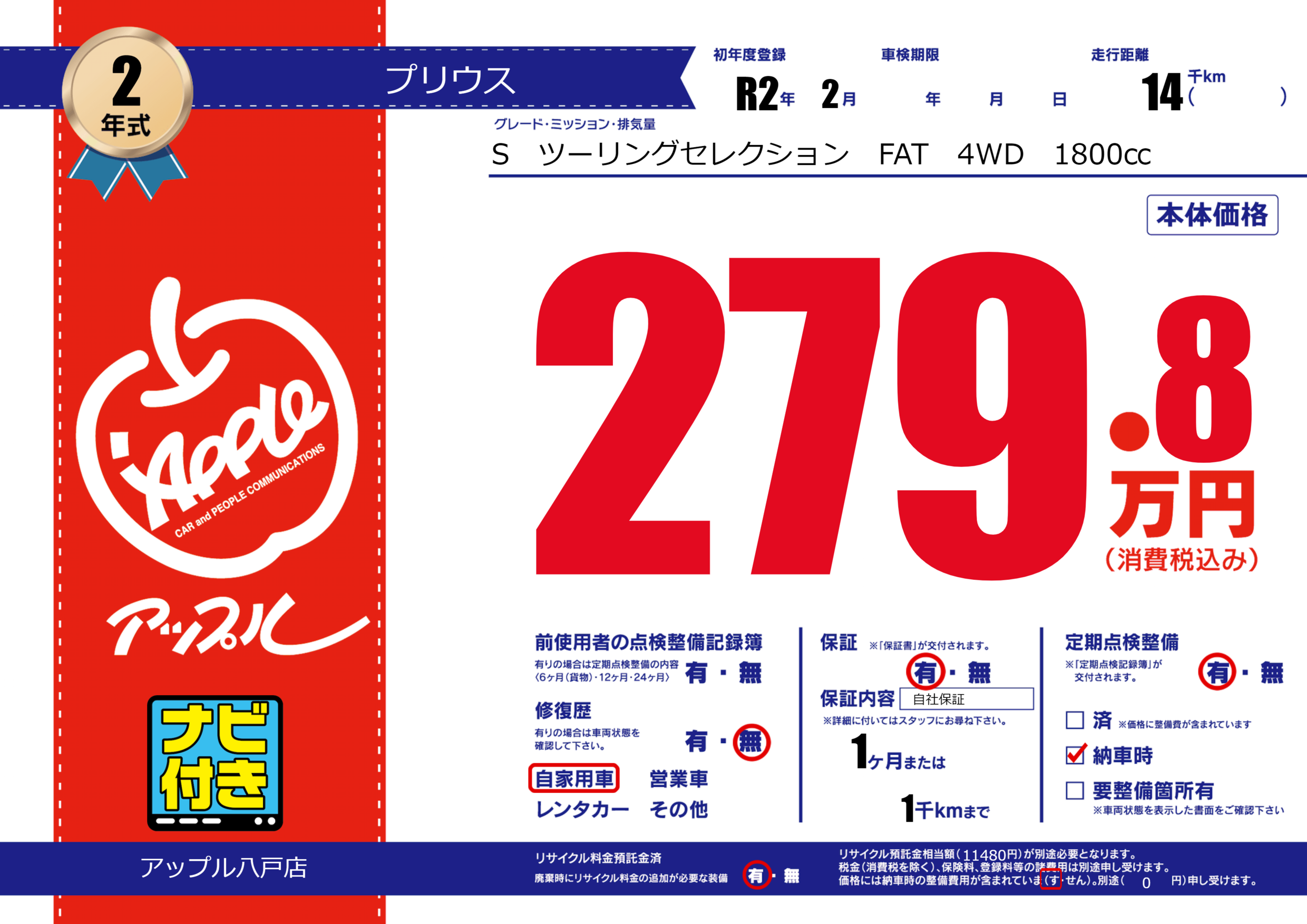 保証付き 保証内容( 自社保証) 1ヶ月または(1)千kmまで |