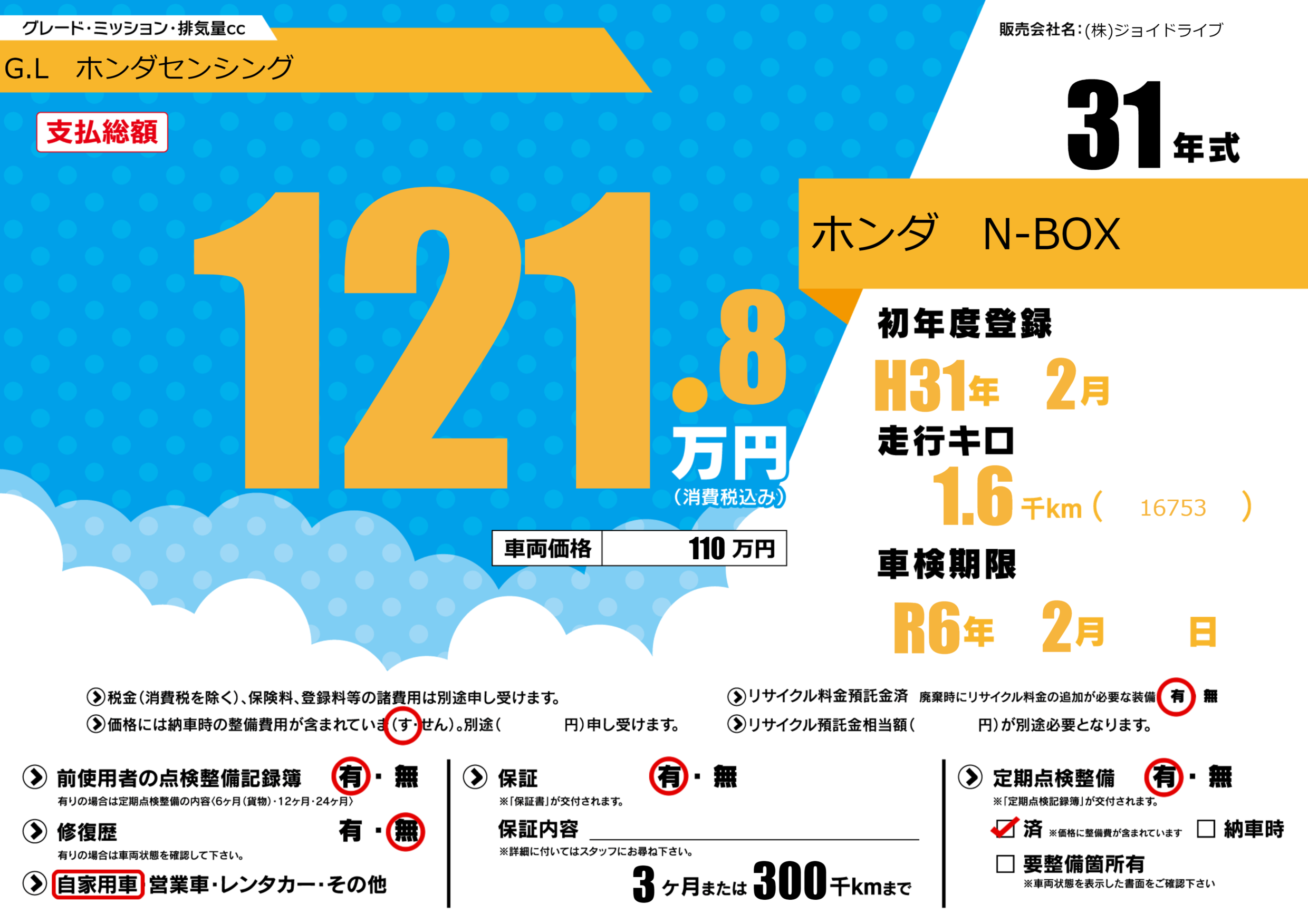 | 定期点検整備 | 定期点検整備あり 定期点検整備済み | ||