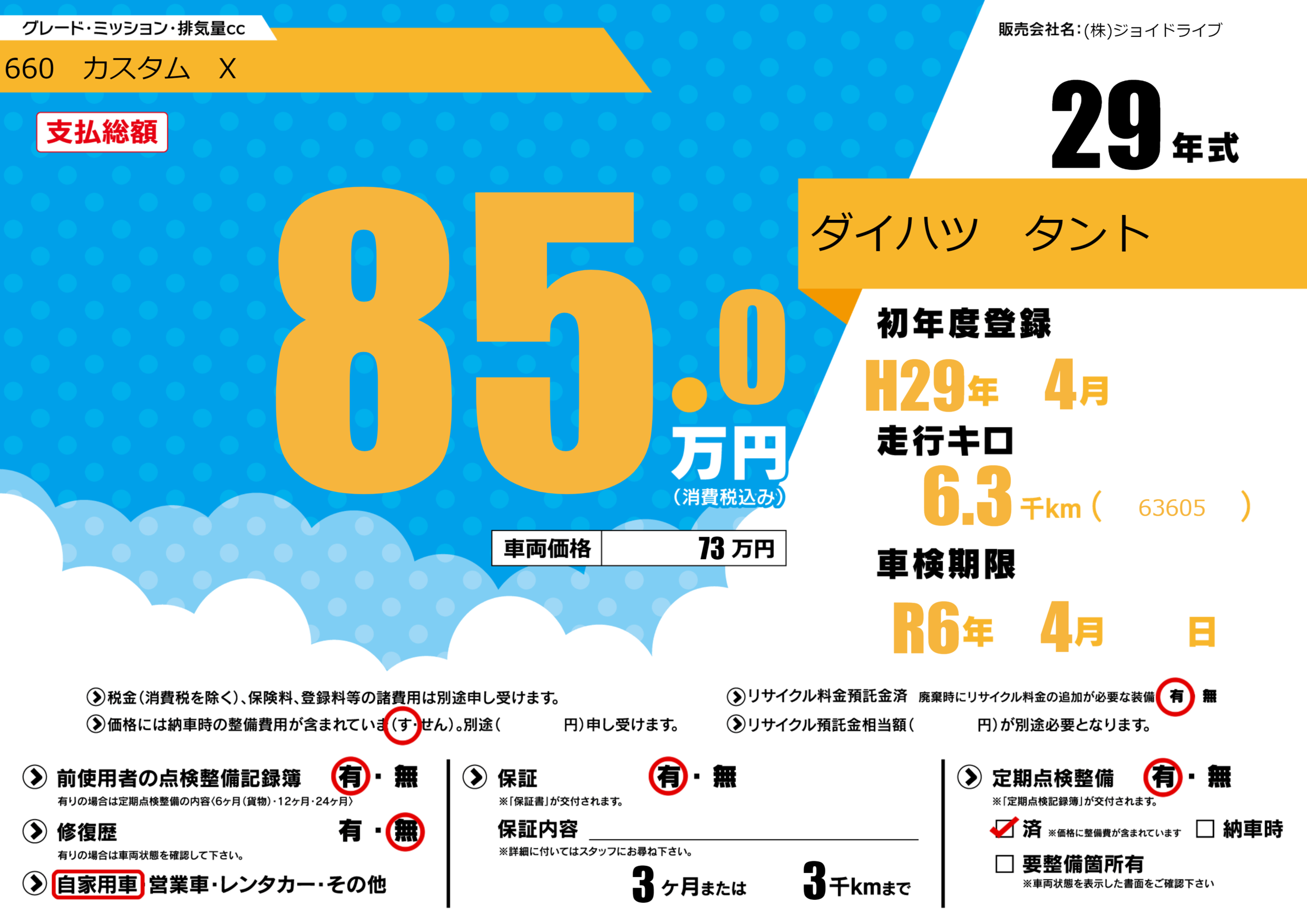 | 定期点検整備 | 定期点検整備あり 定期点検整備済み | ||