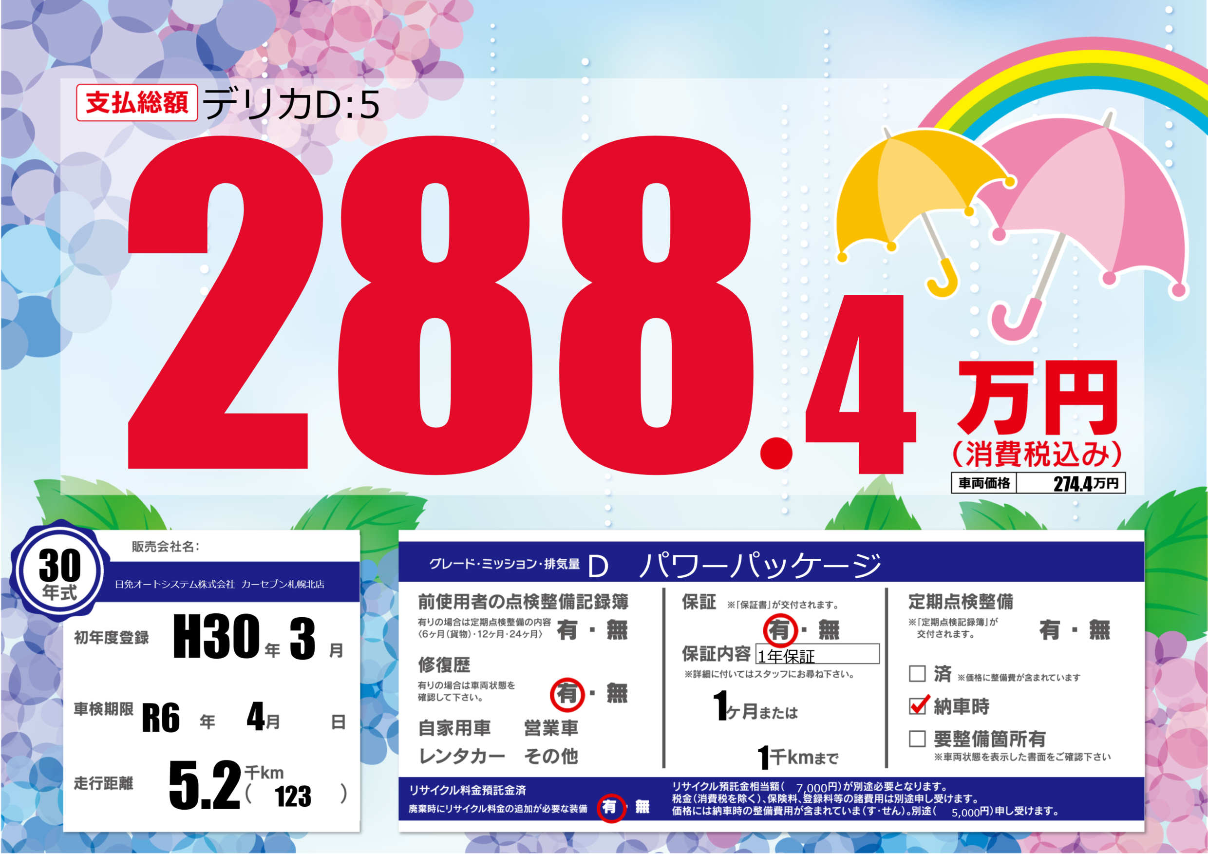| 車名 | デリカD:5 | グレード ミッション 排気量 |