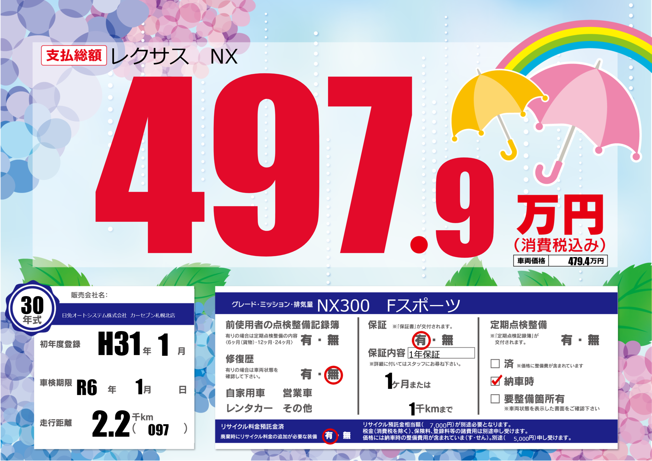 | 車名 | レクサス NX | グレード ミッション 排気量 |