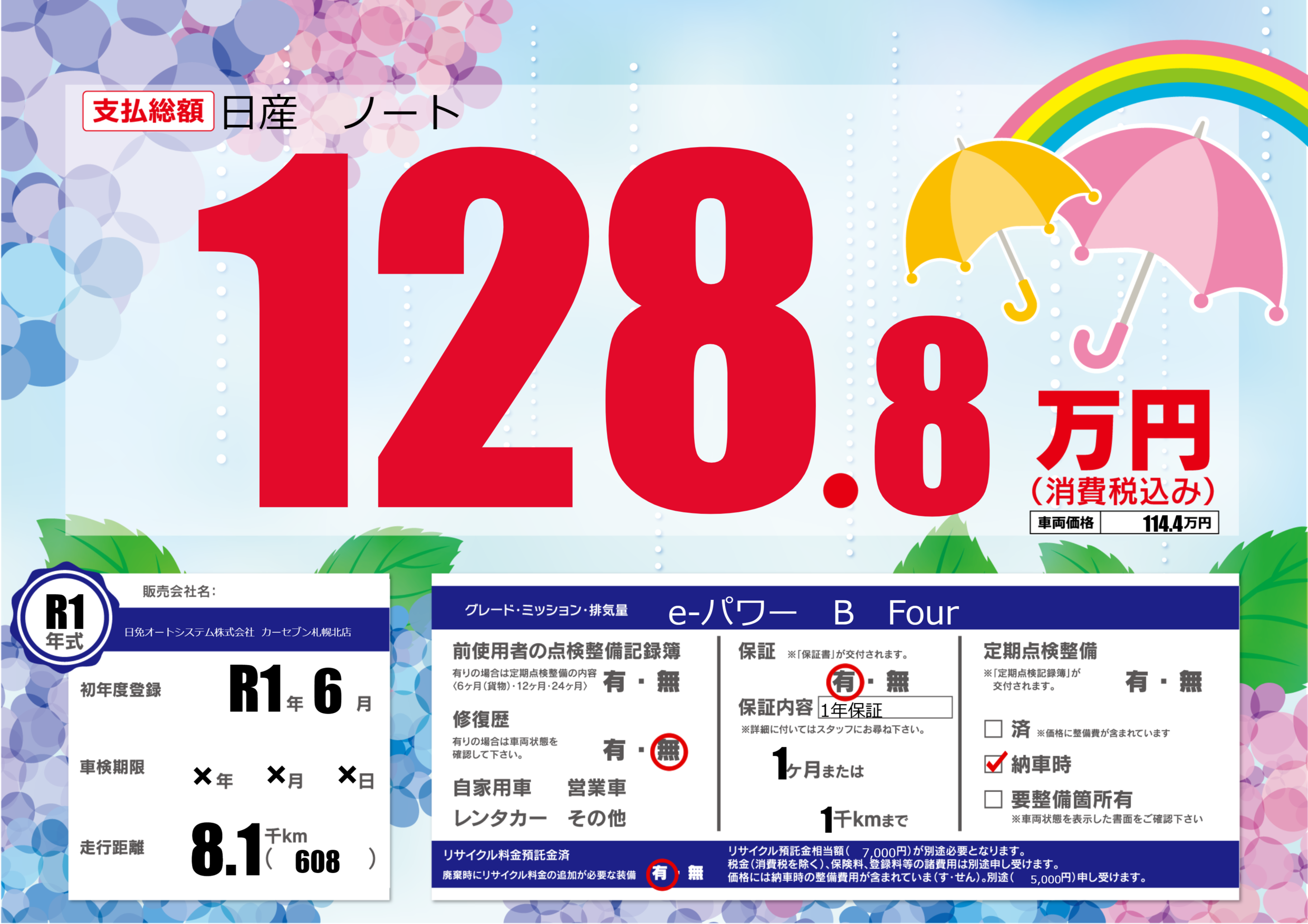 | 車名 | 日産 ノート | グレード ミッション 排気量 |