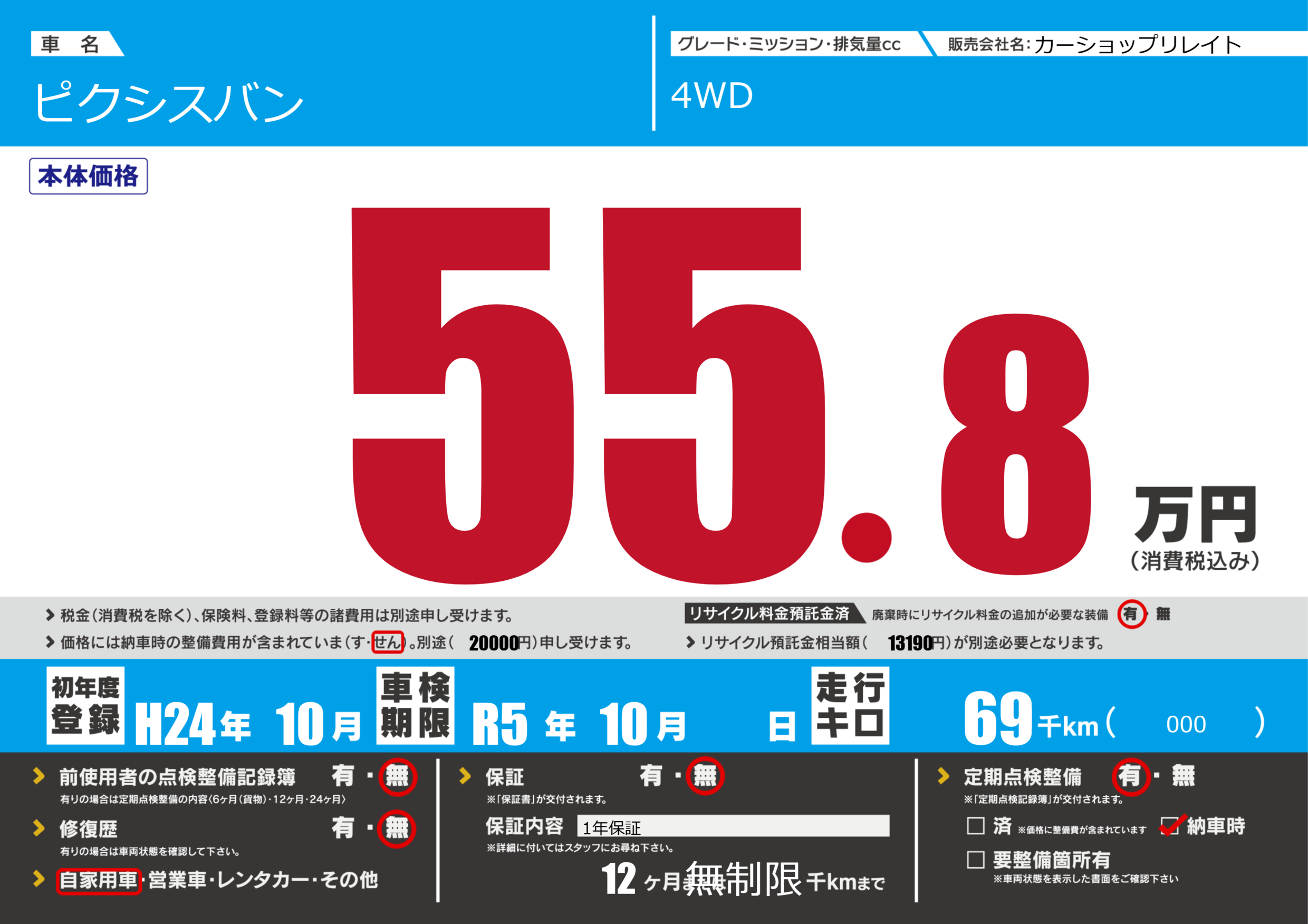 | 車検制限 | R5年 10月 - 日 | ||