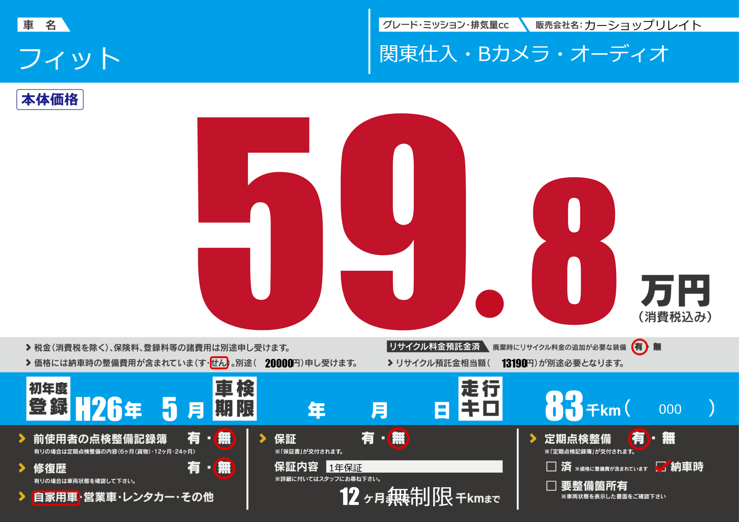 | 車検制限 | - 年 - 月 - 日 | ||