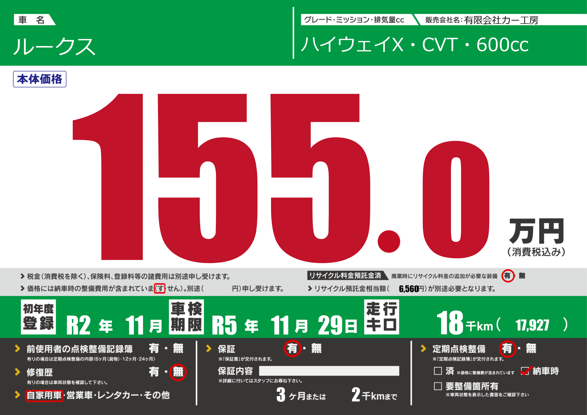 | 車名 | ルークス | グレード ミッション 排気量 |