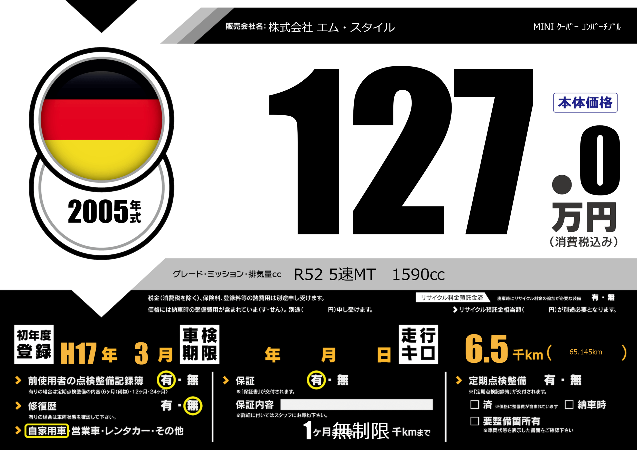 | 初年度登録 | H17年3月 | ||