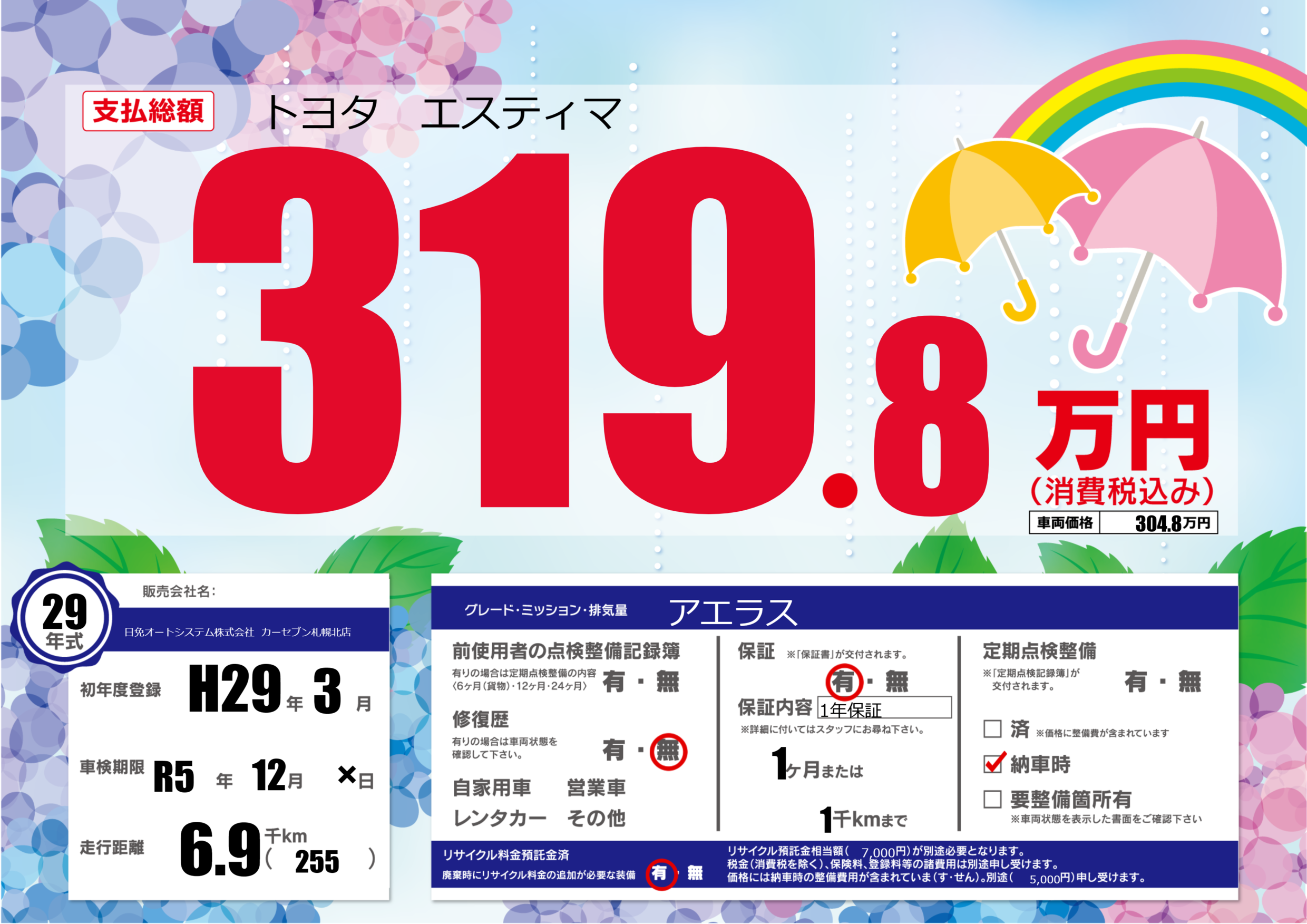 | 車名 | トヨタ エスティマ | グレード ミッション 排気量 |