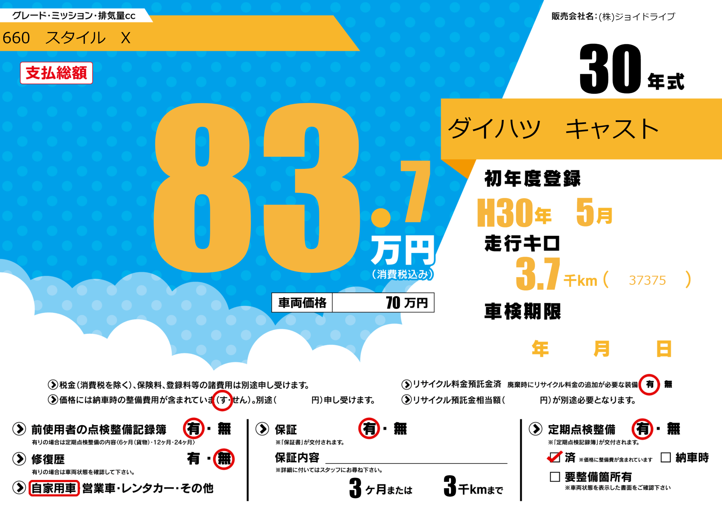 | 定期点検整備 | 定期点検整備あり 定期点検整備済み | ||