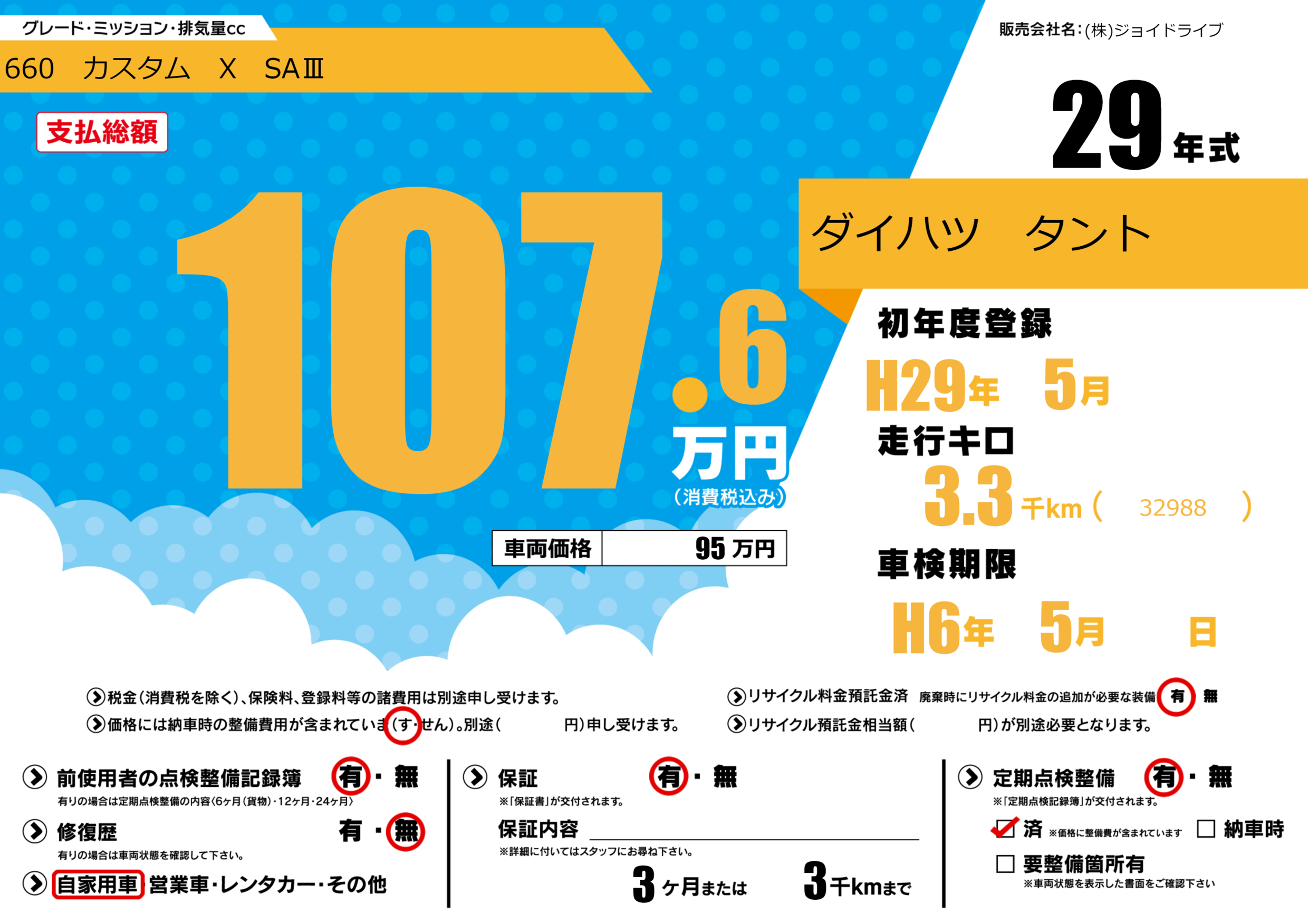 | 定期点検整備 | 定期点検整備あり 定期点検整備済み | ||
