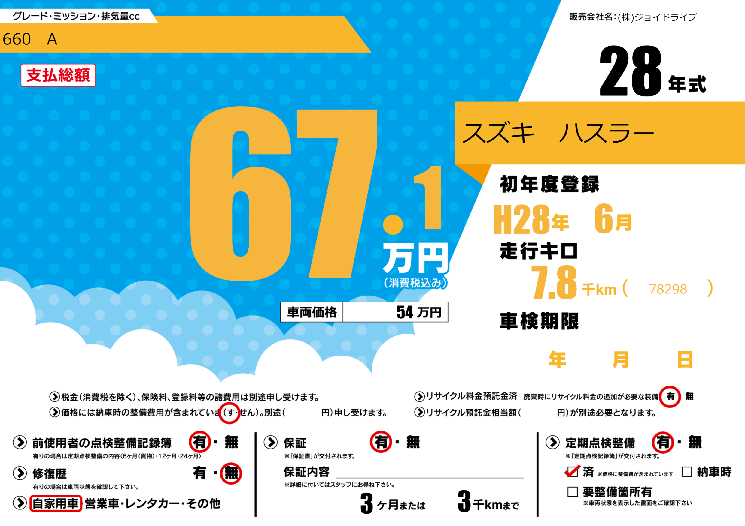 | 定期点検整備 | 定期点検整備あり 定期点検整備済み | ||