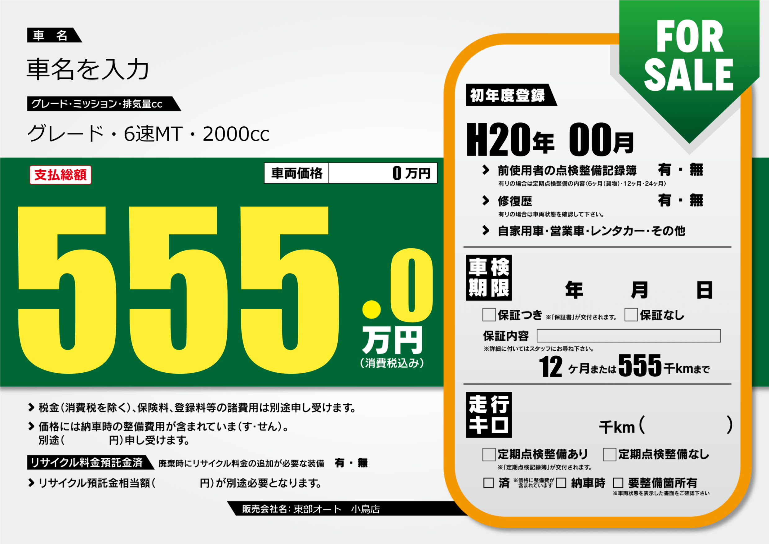 | 車検制限 | - 年 - 月 - 日 | ||
