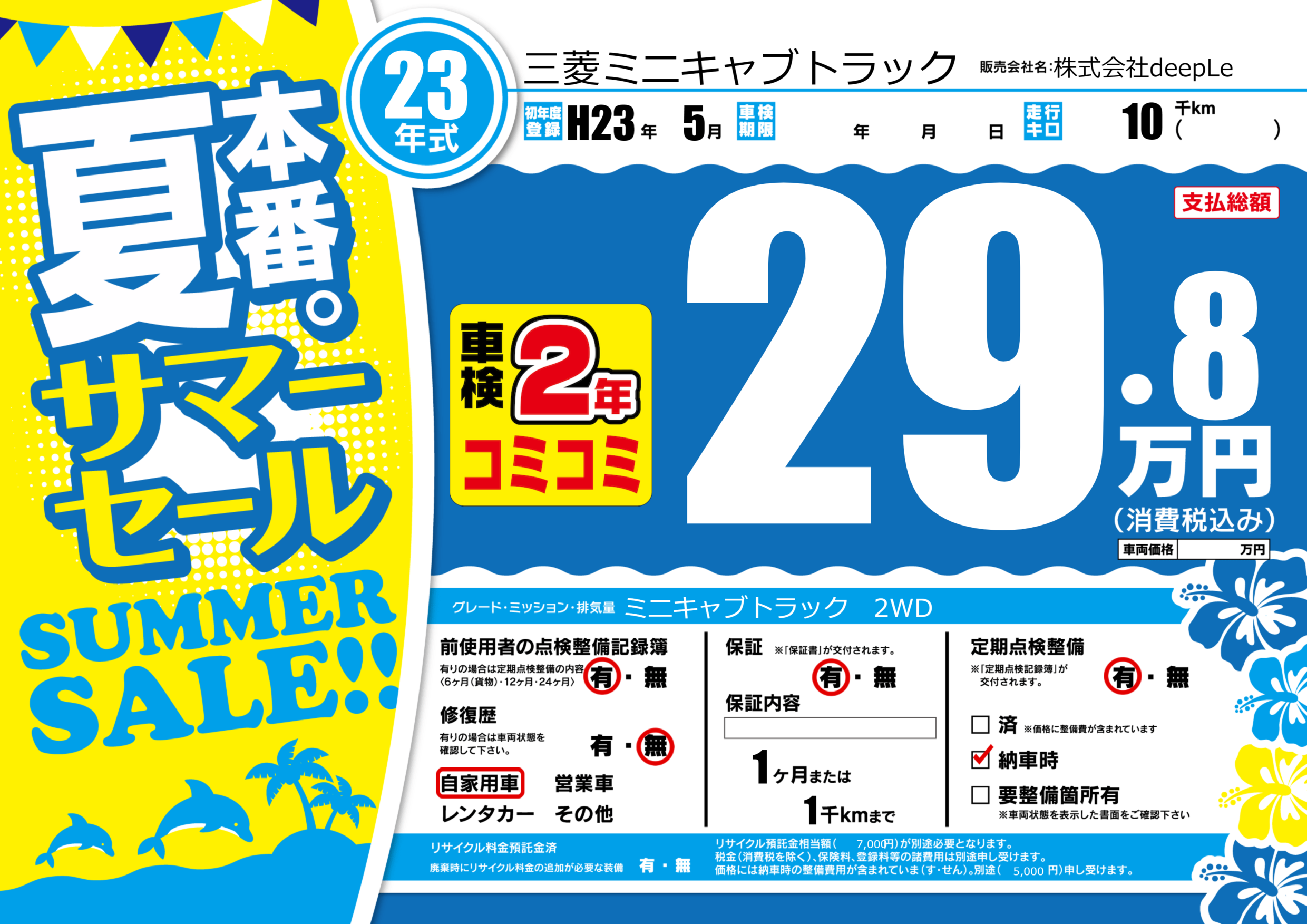 | 走行キロ | 1万km | 初年度登録 | H23年5月 |