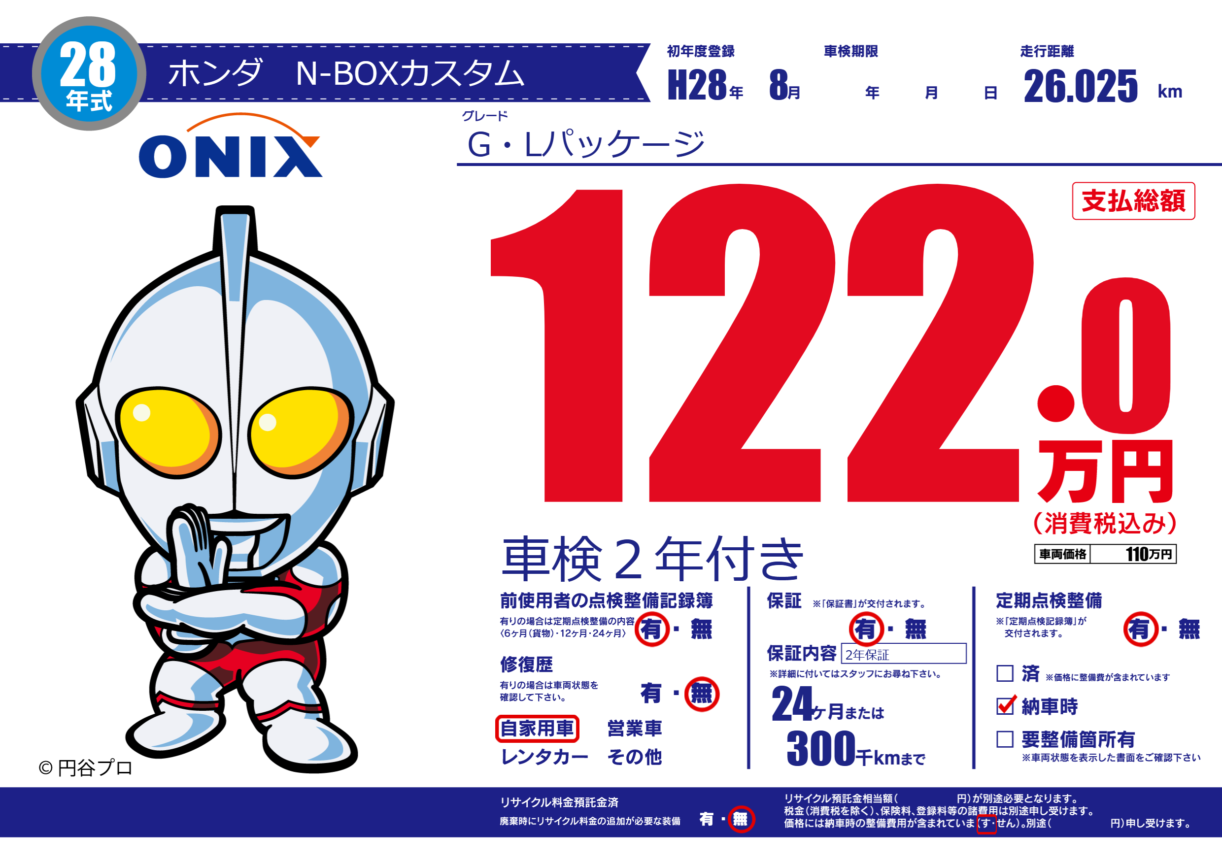 | 車名 | ホンダ N-BOXカスタム | グレード ミッション 排気量 |