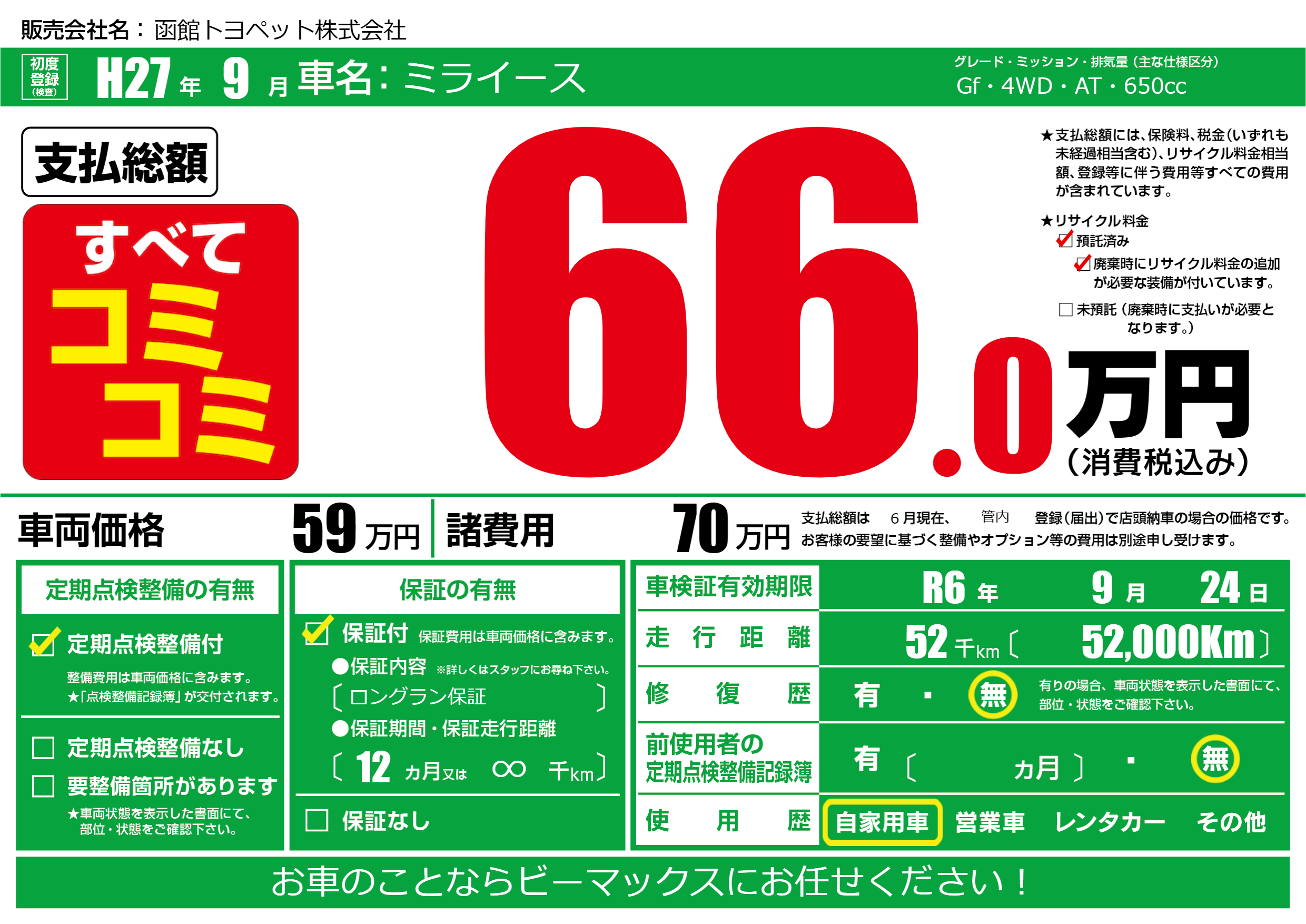 | 車検制限 | R6年 9月 24日 | ||