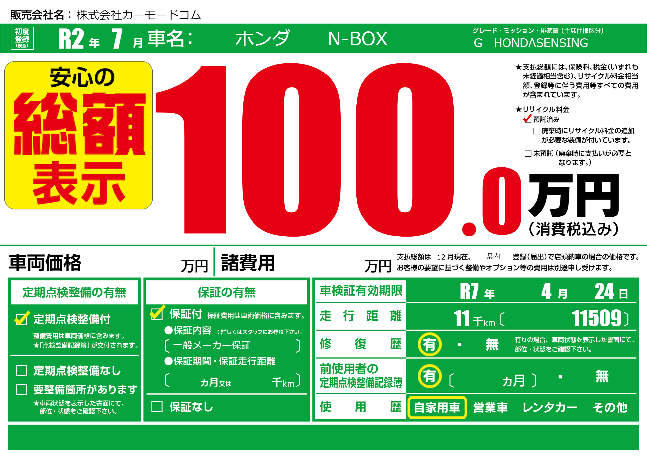 なし | 車検制限 | R7年4月24月 |