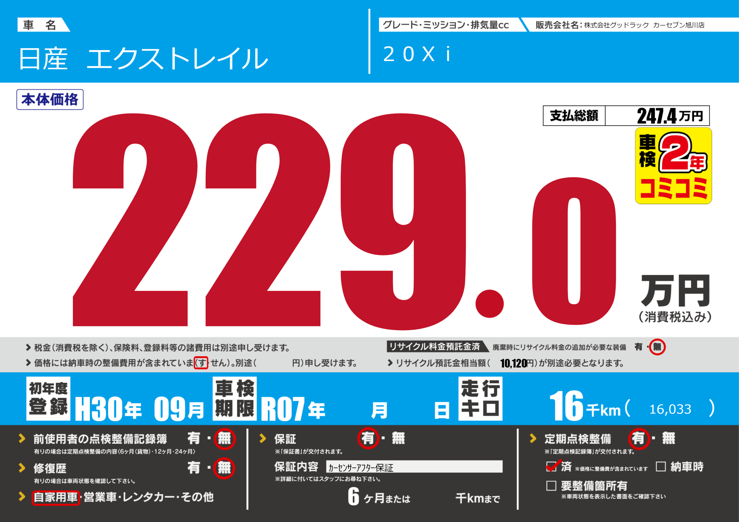 | 定期点検整備 | 定期点検整備あり 定期点検整備済み | ||