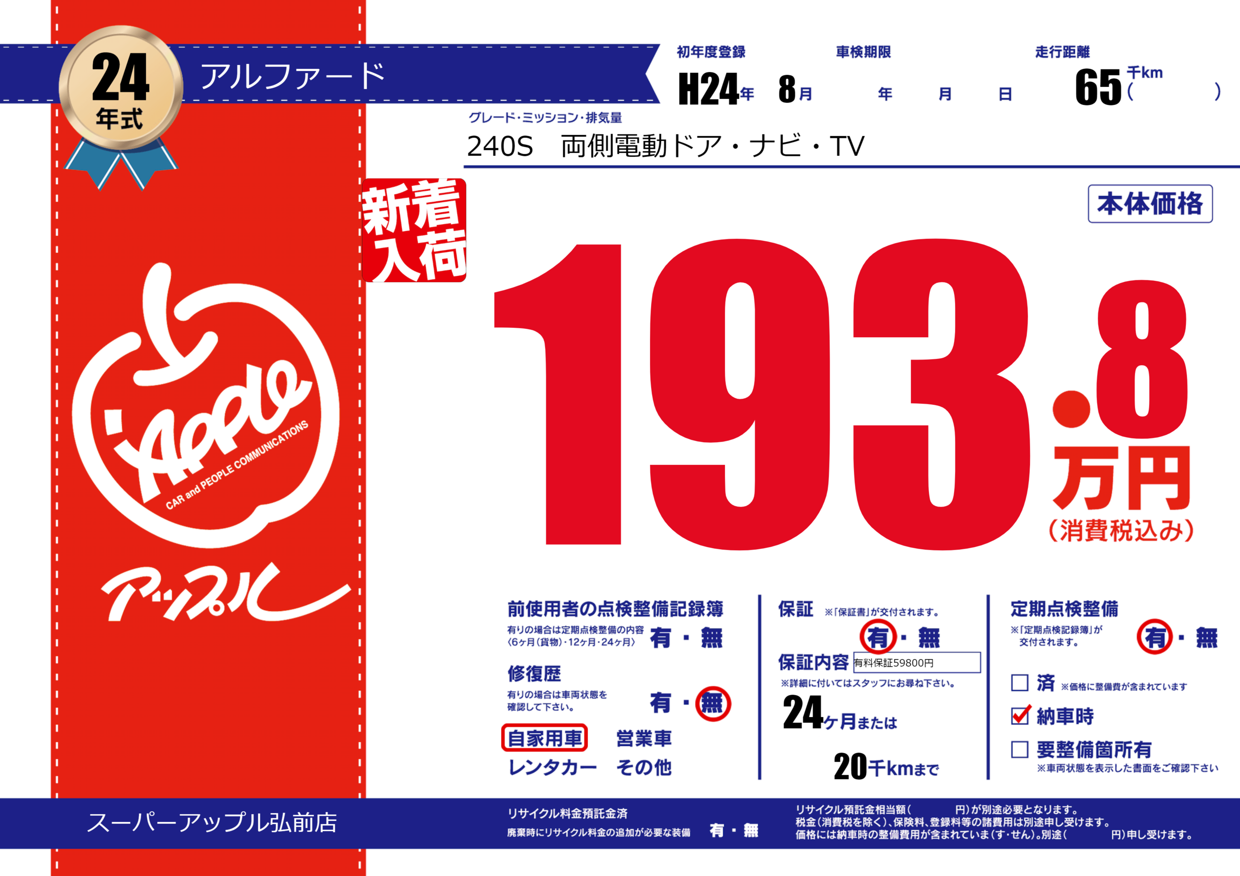 | 車名 | アルファード | グレード ミッション 排気量 |
