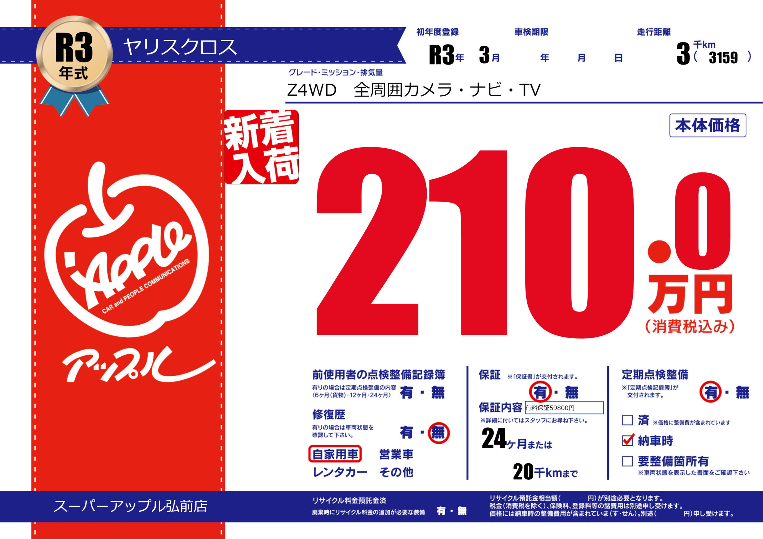 | 走行キロ | 0.3万km | 初年度登録 | R3年3月 |