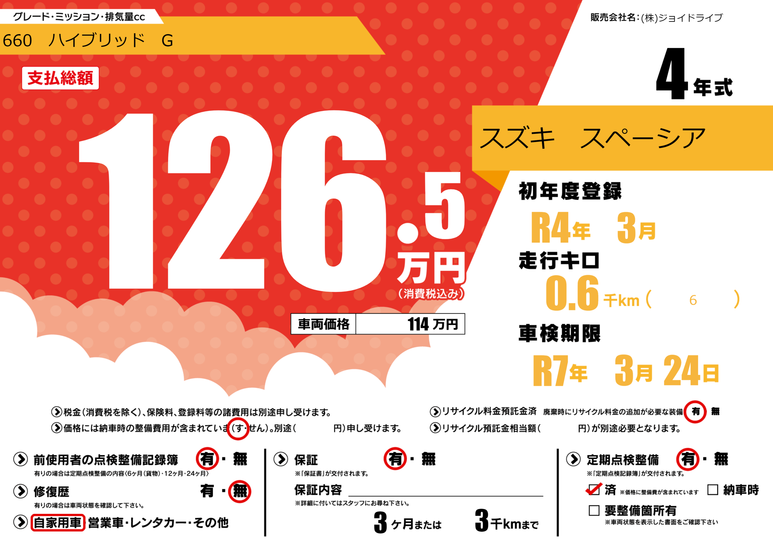 | 走行キロ | - | 初年度登録 | R4年3月 |