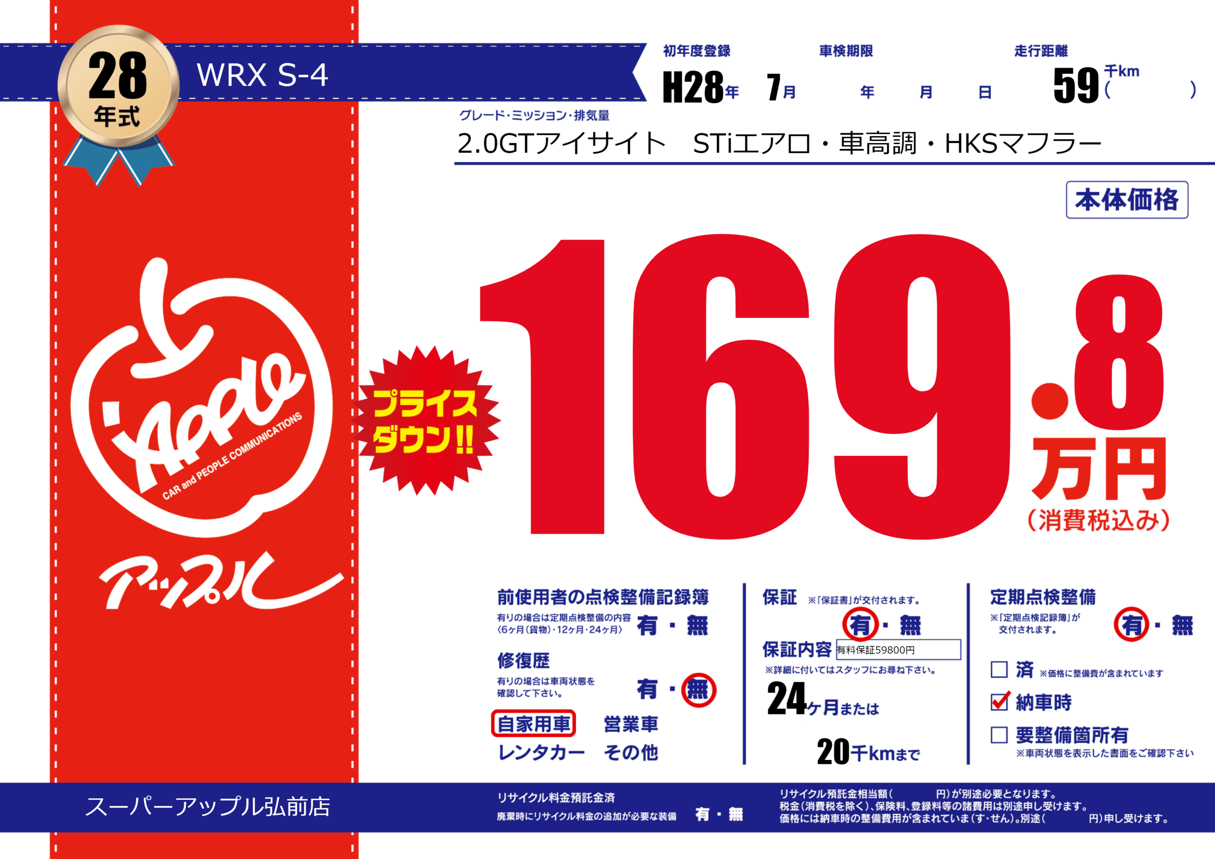 保証付き 保証内容(有料保証59800円) 24ヶ月または20千km |
