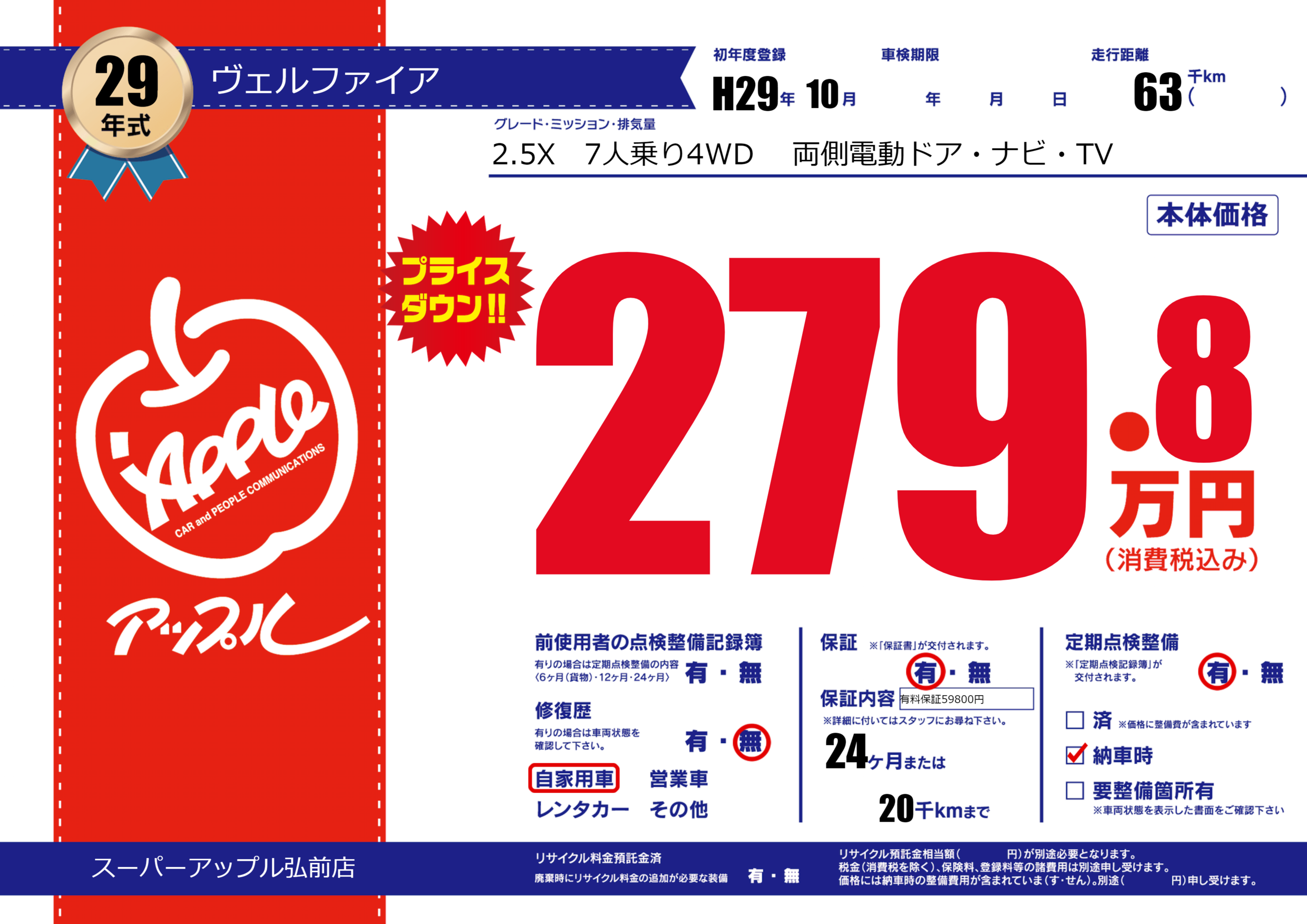 | 走行キロ | 6.3万km | 初年度登録 | H29年10月 |