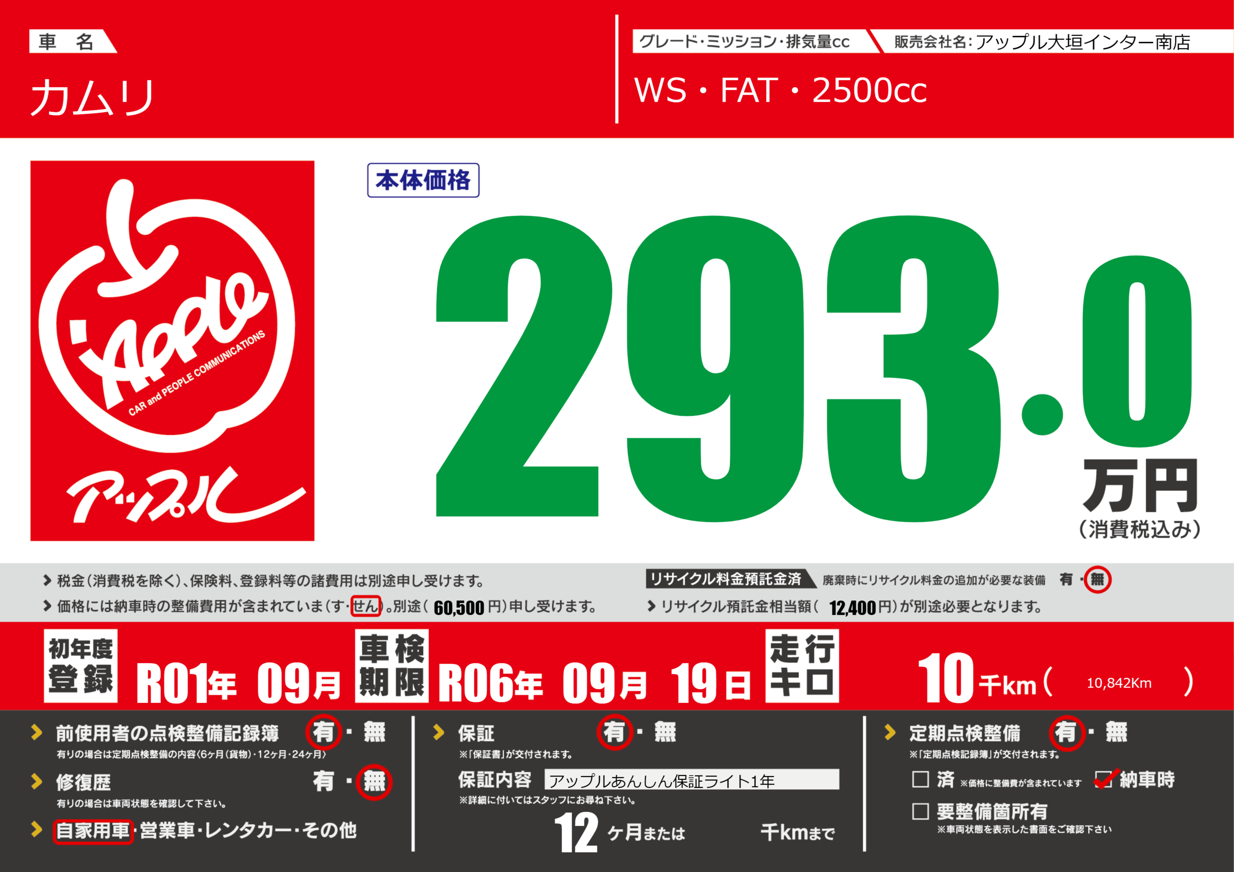 | 走行キロ | 1万km | 初年度登録 | R01年09月 |