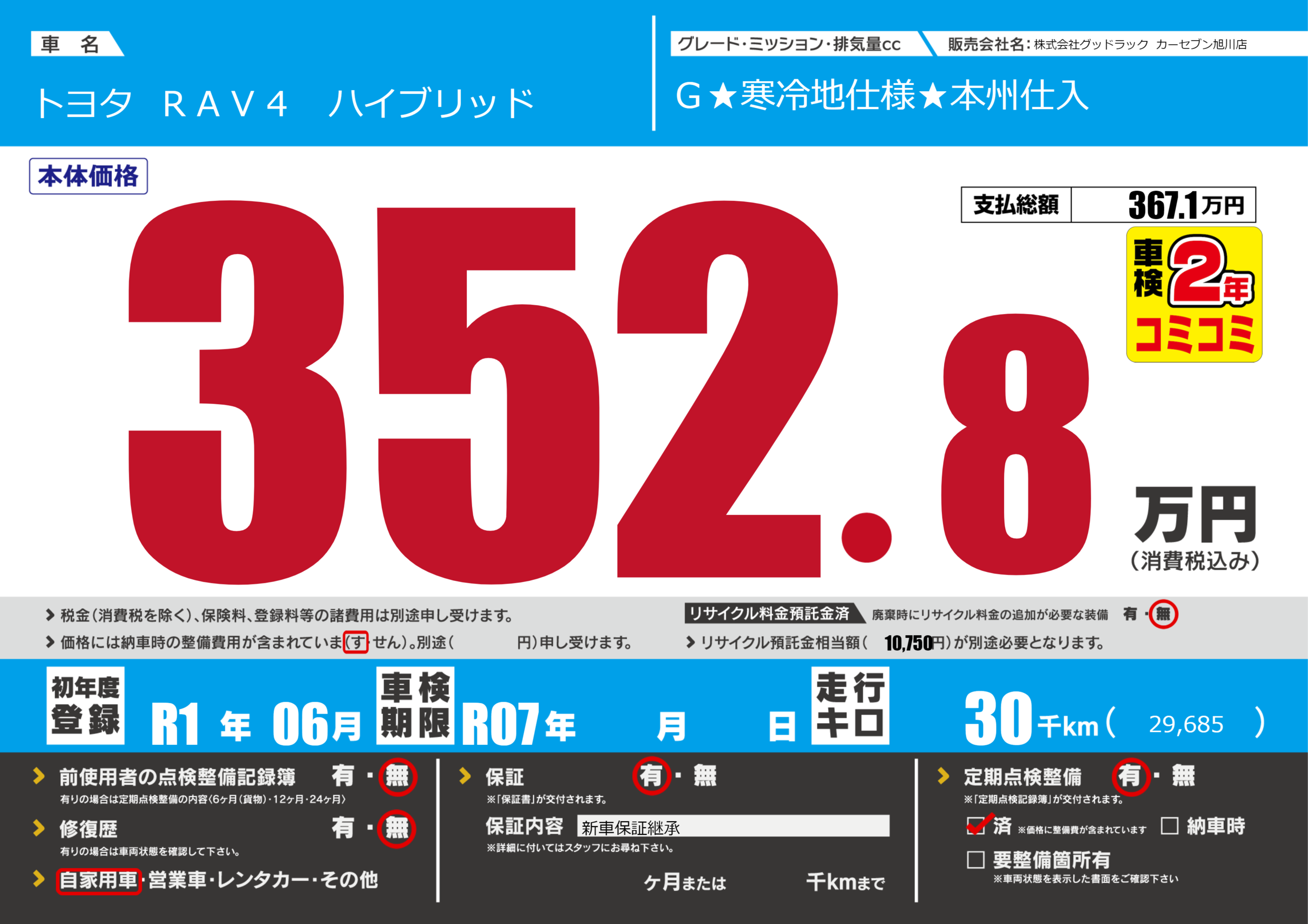 | 定期点検整備 | 定期点検整備あり 定期点検整備済み | ||