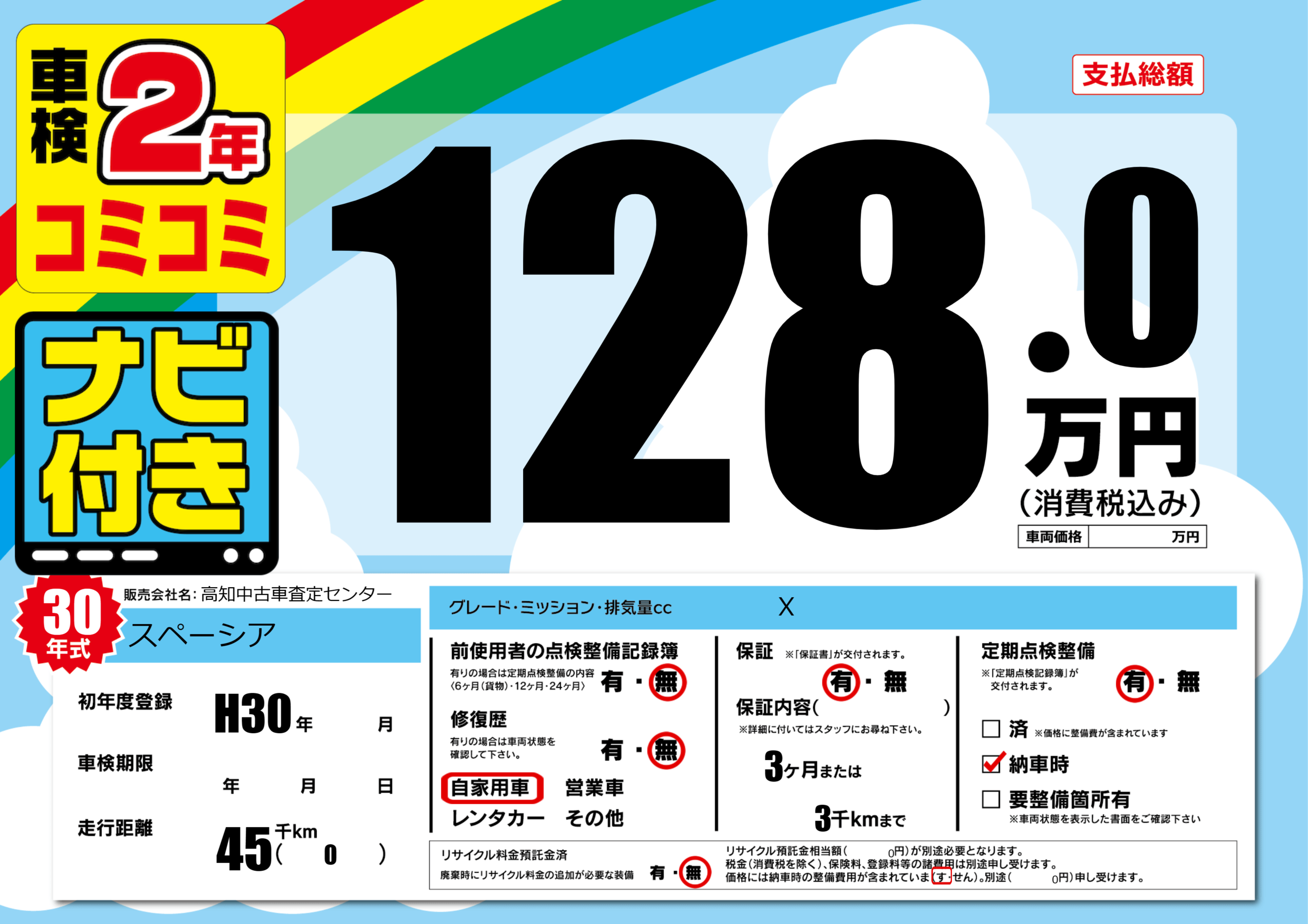 | 定期点検整備 | 定期点検整備あり 納車時あり | ||