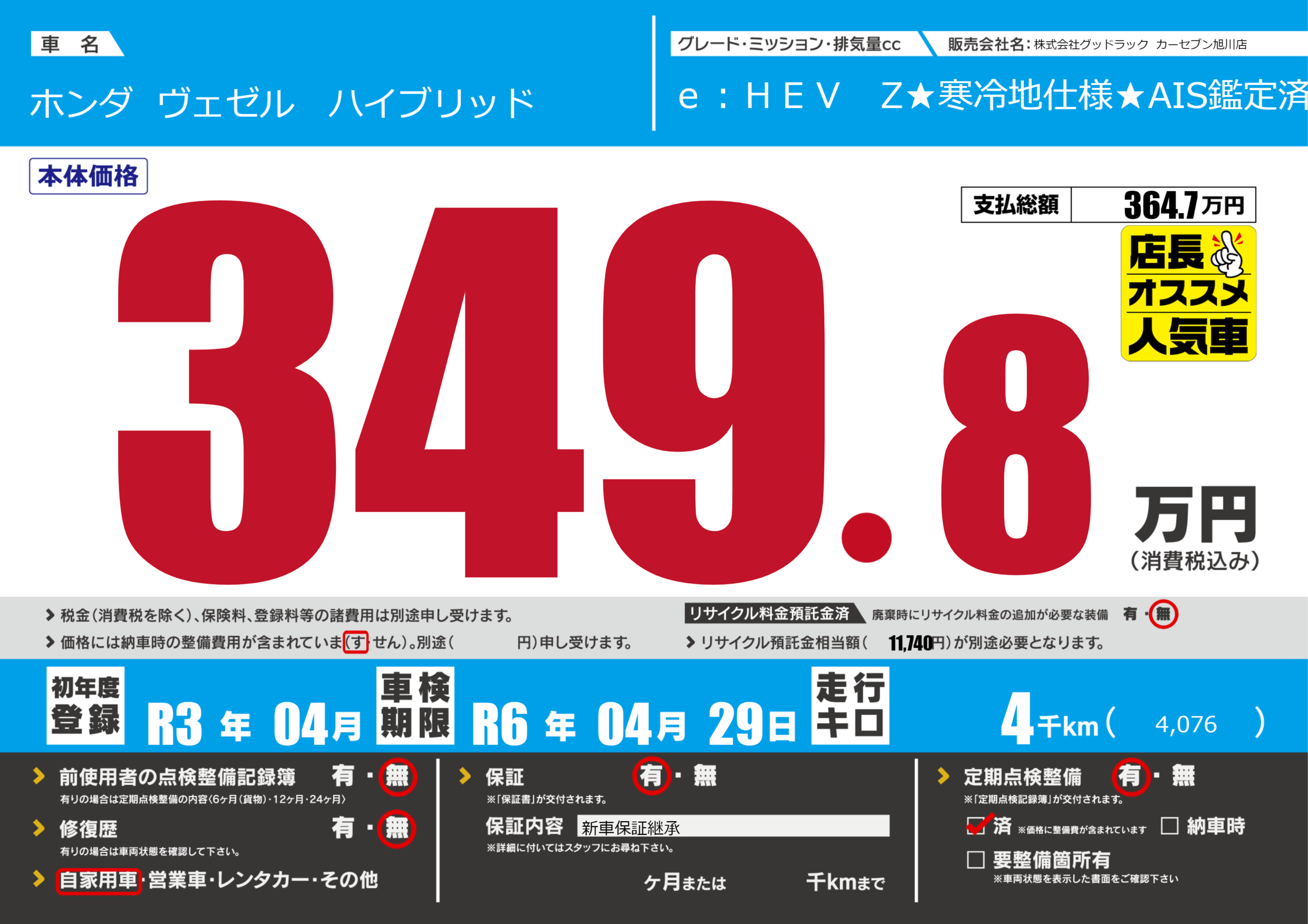| 定期点検整備 | 定期点検整備あり 定期点検整備済み | ||