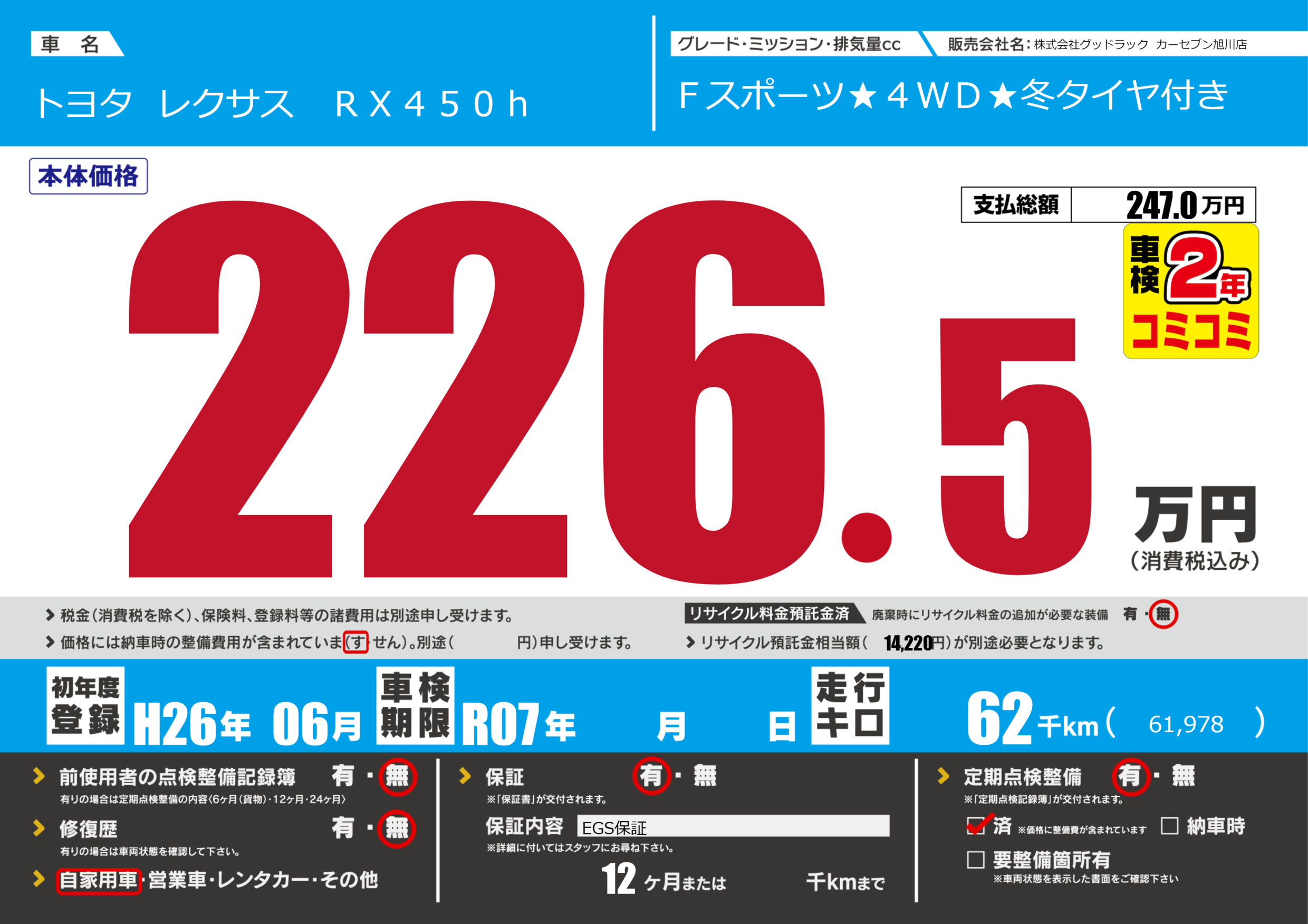 | 定期点検整備 | 定期点検整備あり 定期点検整備済み | ||