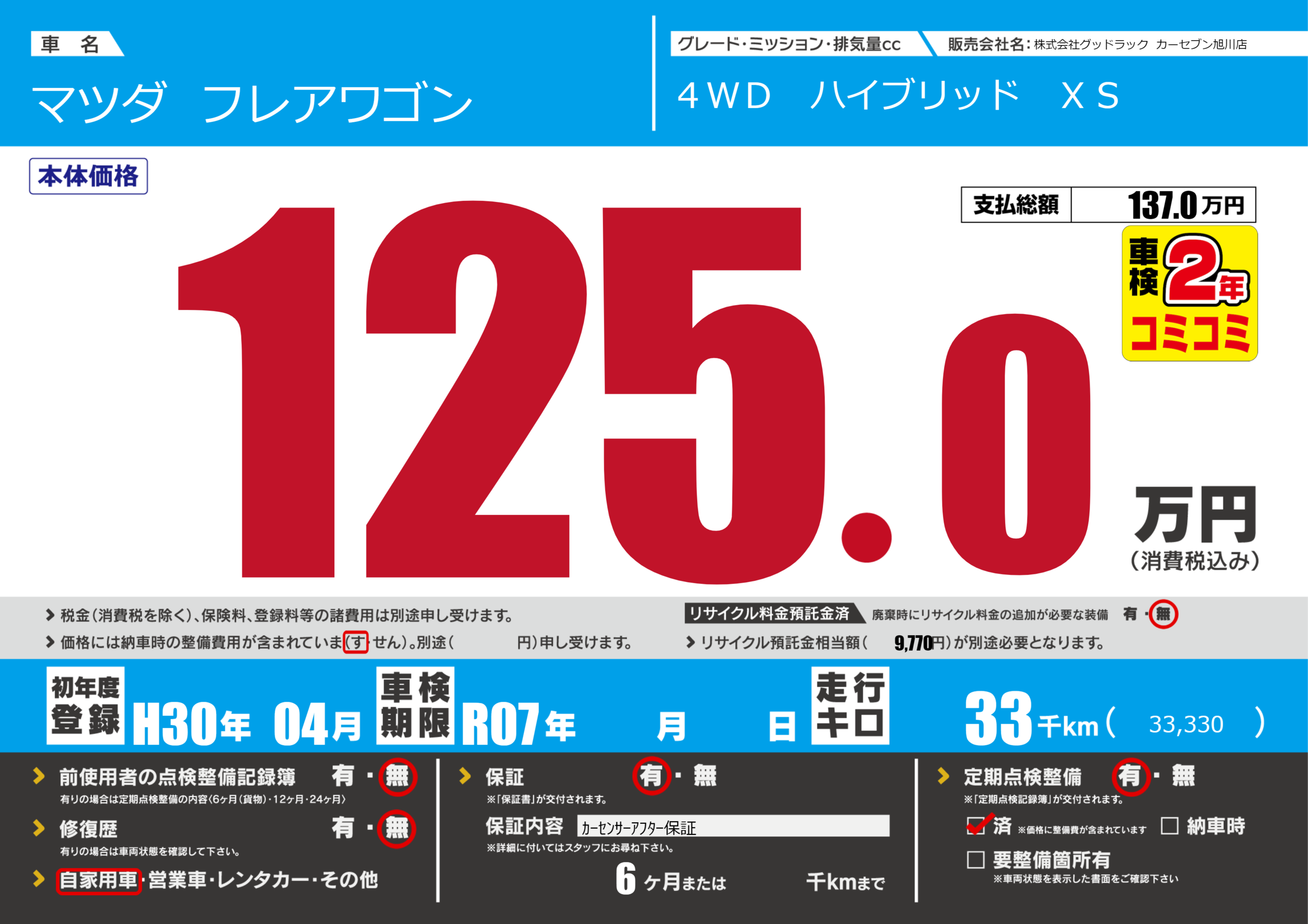 | 定期点検整備 | 定期点検整備あり 定期点検整備済み | ||