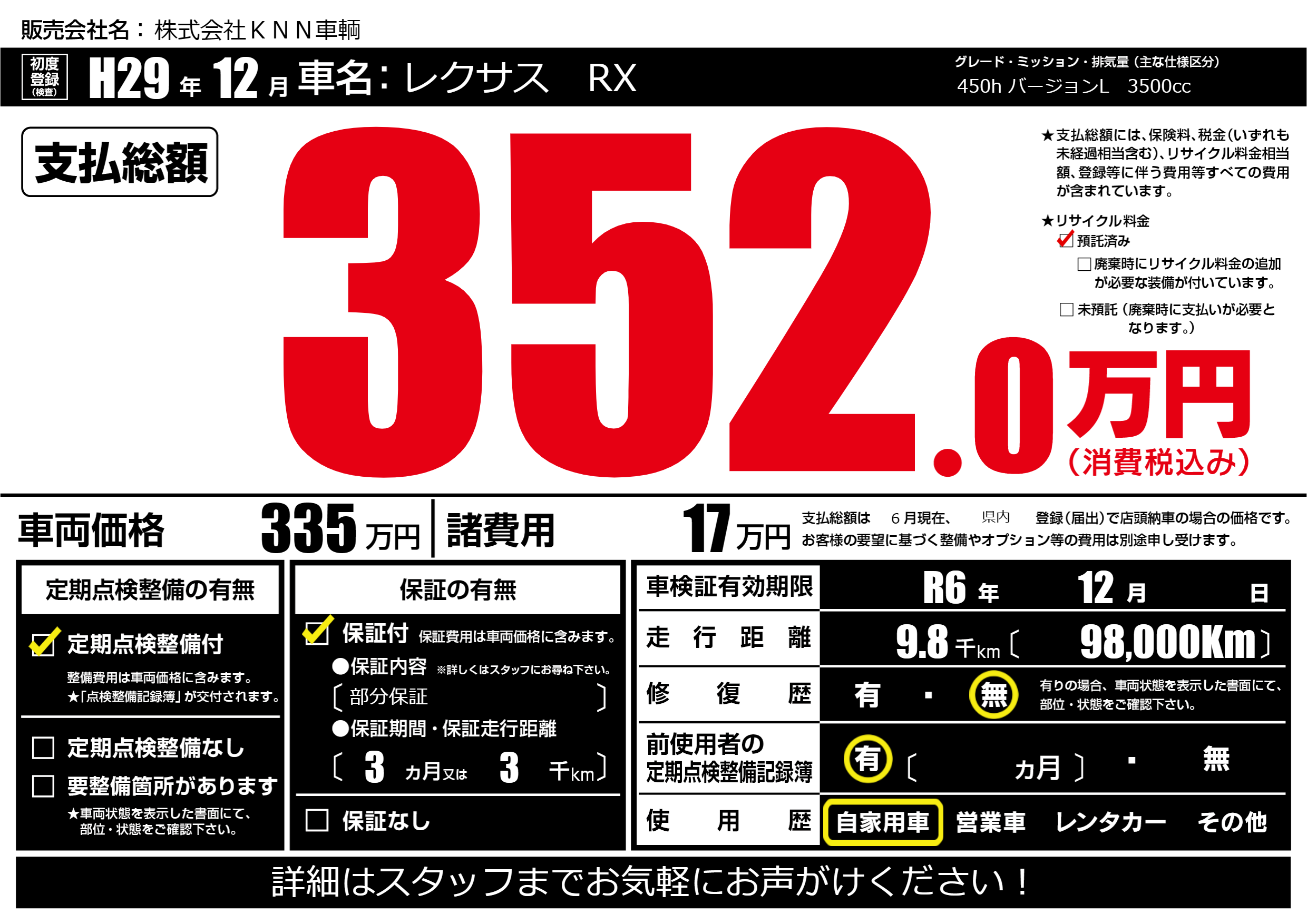 なし | 車検制限 | R6年12月---月 |