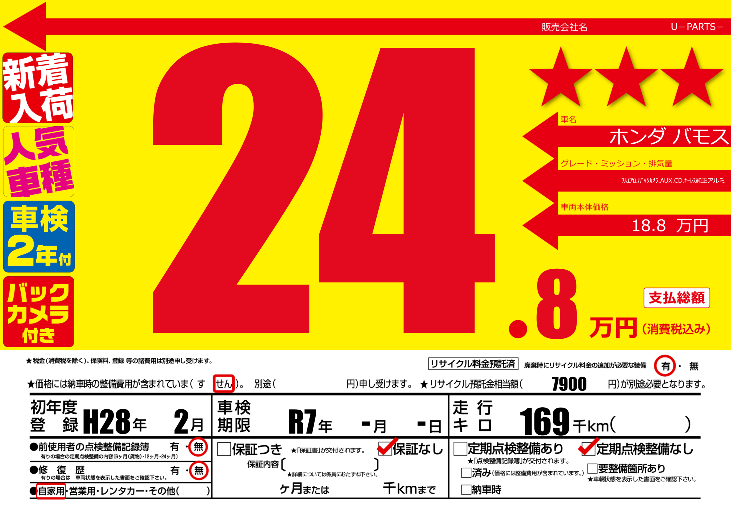 | 車名 | ホンダ バモス | グレード ミッション 排気量 |