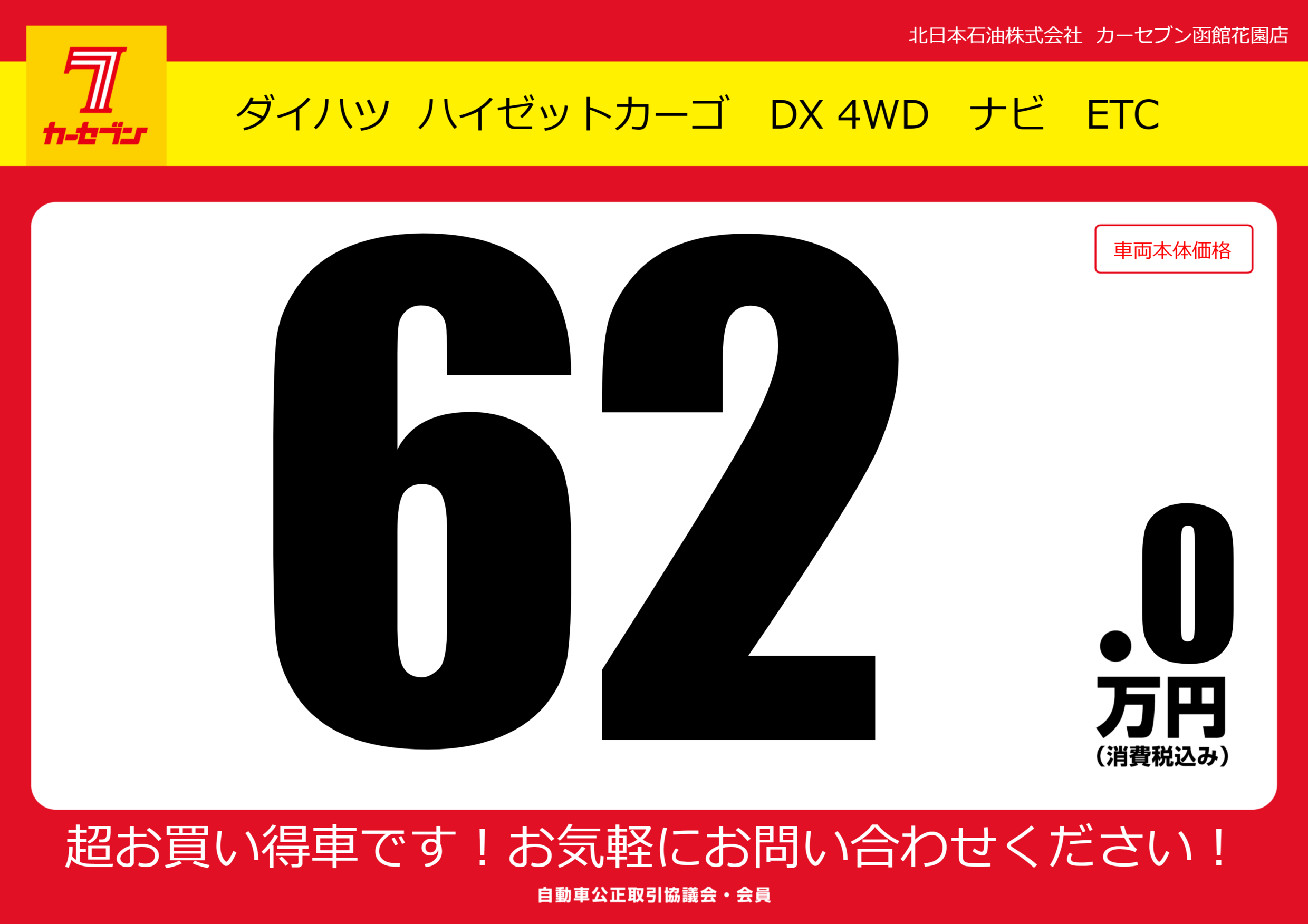 | 車名 | ダイハツ ハイゼットカーゴ DX 4WD ナビ ETC | グレード ミッション 排気量 |
