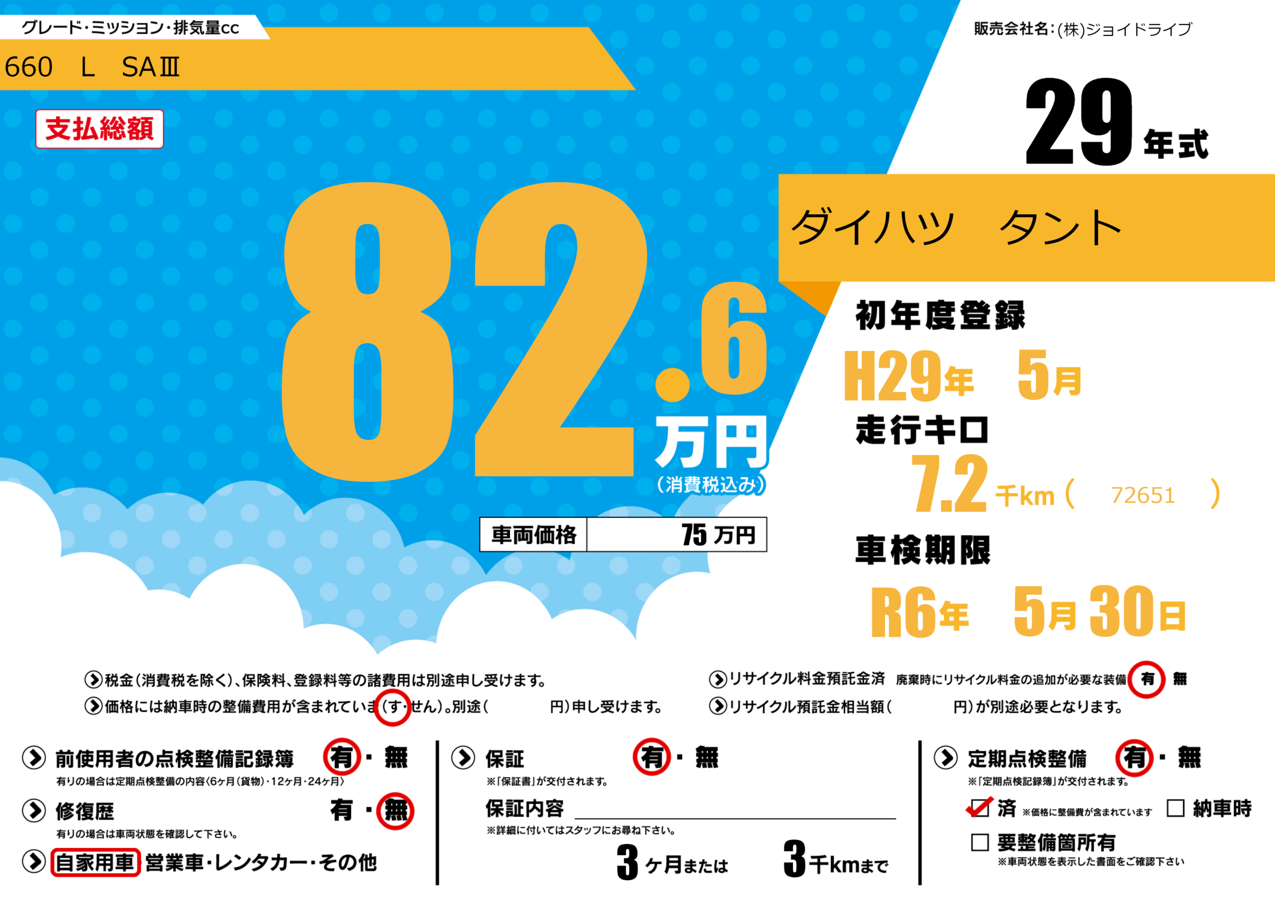 | 定期点検整備 | 定期点検整備あり 定期点検整備済み | ||