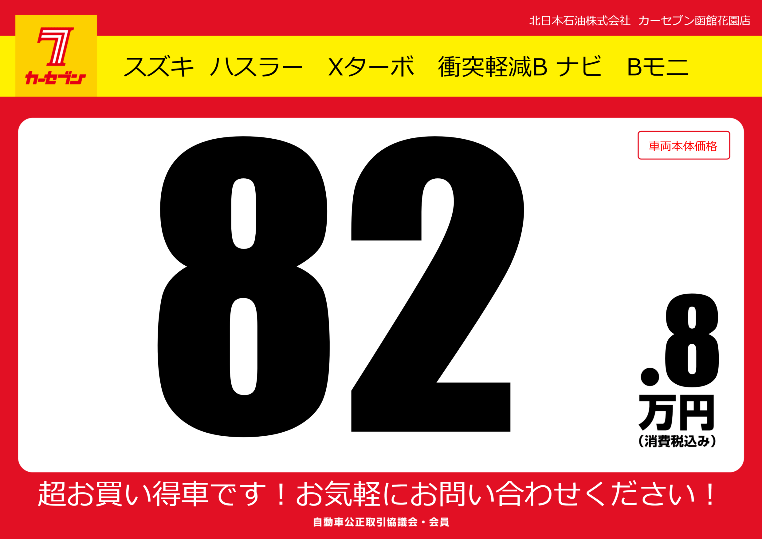 | 車名 | スズキ ハスラー Xターボ 衝突軽減B ナビ Bモニ | グレード ミッション 排気量 |