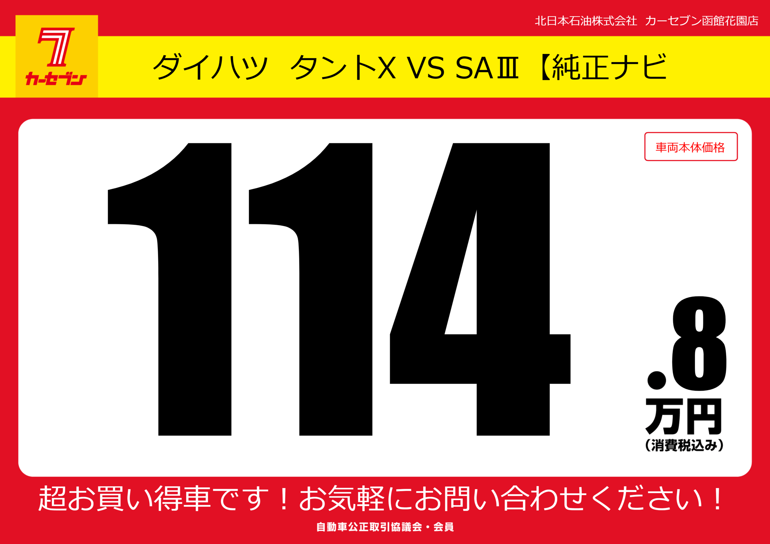| 車名 | ダイハツ タントX VS SAⅢ【純正ナビ | グレード ミッション 排気量 |