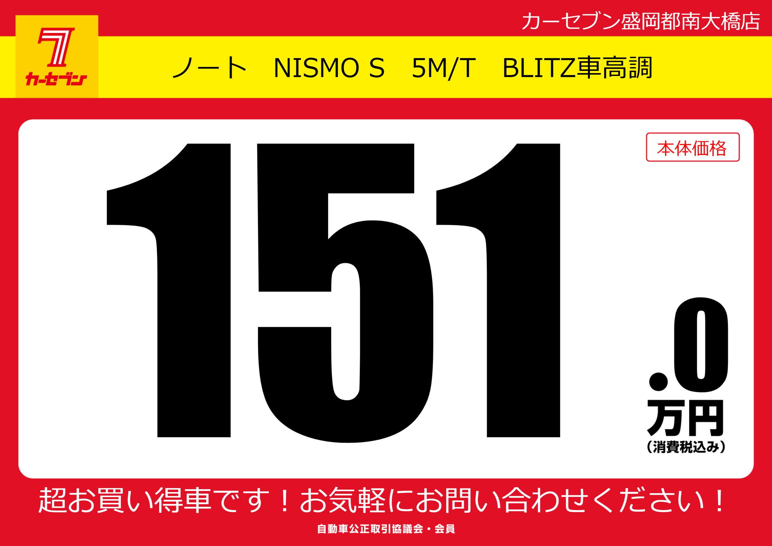 | 車名 | ノート NISMO S 5M/T BLITZ車高調 | グレード ミッション 排気量 |