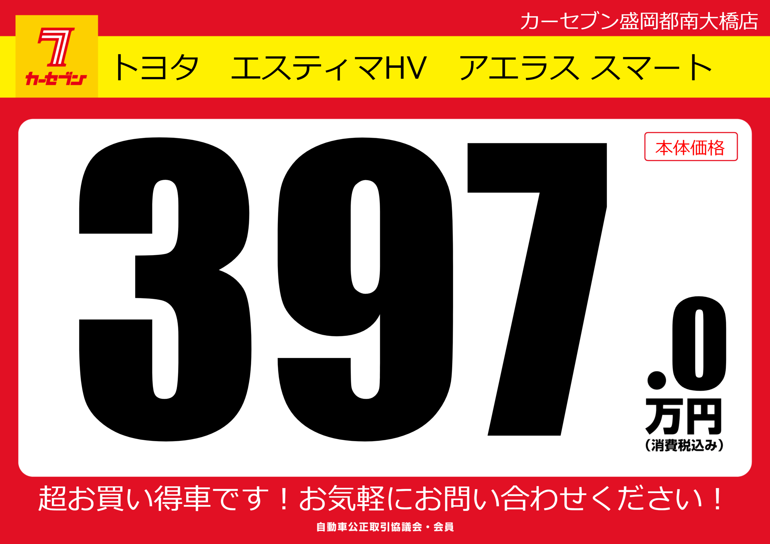 | 車名 | トヨタ エスティマHV アエラス スマート | グレード ミッション 排気量 |