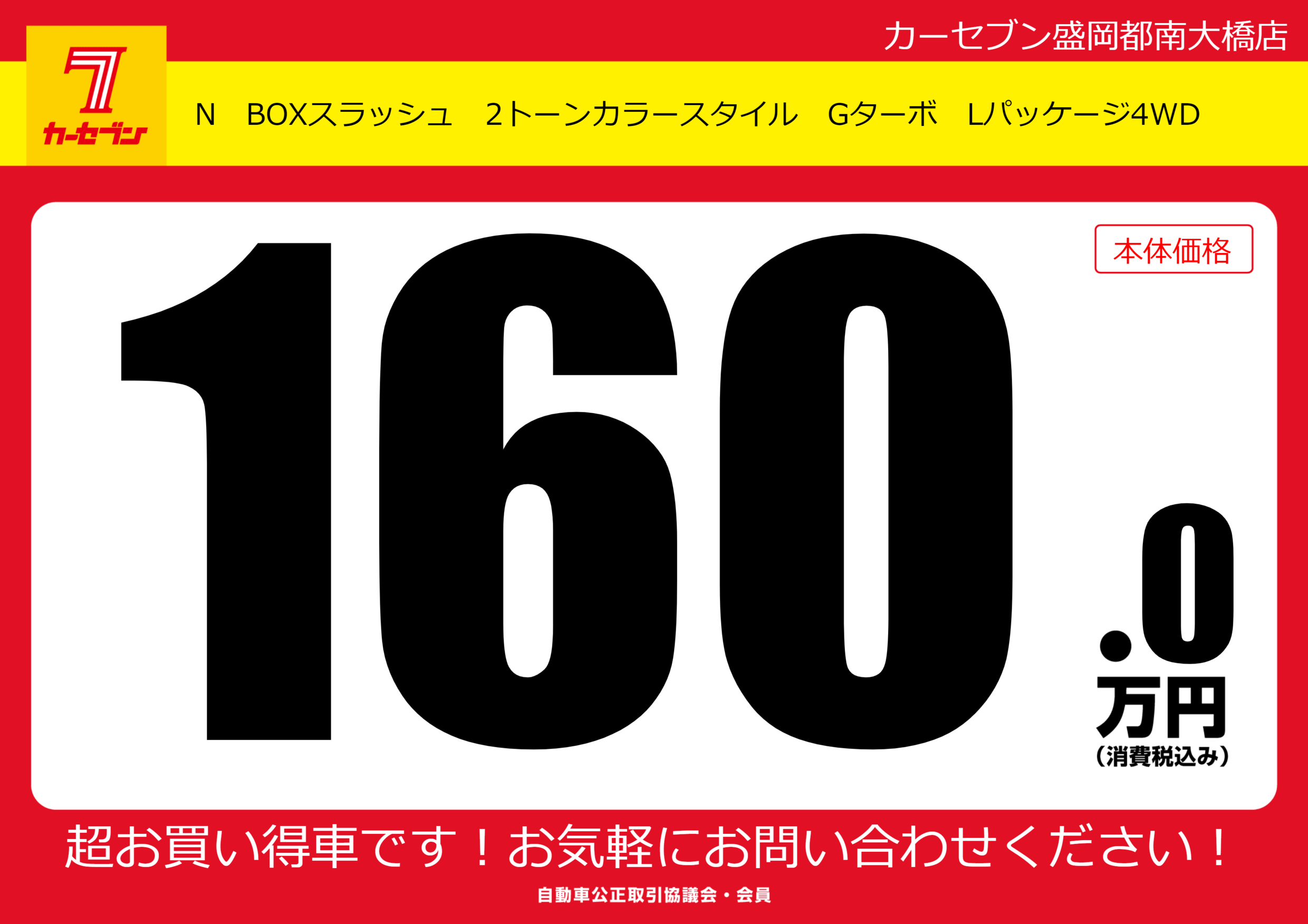 | 車名 | N BOXスラッシュ 2トーンカラースタイル Gターボ Lパッケージ4WD | グレード ミッション 排気量 |